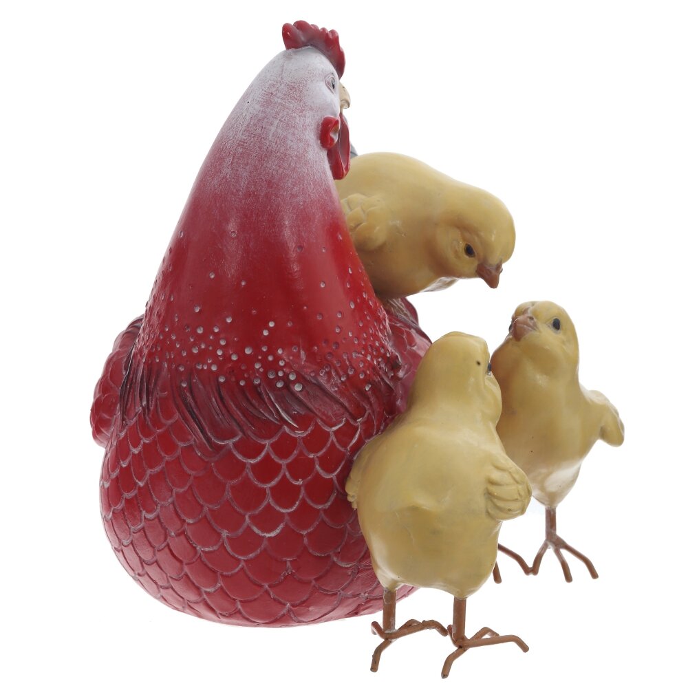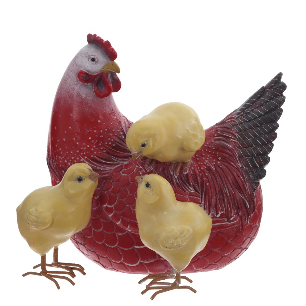 Декоративная фигурка «Курица с цыплятами» – трогательное украшение для дома и пасхального стола. Модель выполнена из прочных полимерных материалов с аккуратной прорисовкой деталей: фактурные перья курочки, нежный жёлтый цвет цыплят, устойчивые лапки. Композиция символизирует семейный уют, изобилие и возрождение, поэтому отлично подойдёт для оформления интерьера к Пасхе, украшения кухни, детской или загородного дома. Фигурка станет милым акцентом в коллекции сувениров и приятным подарком близким.