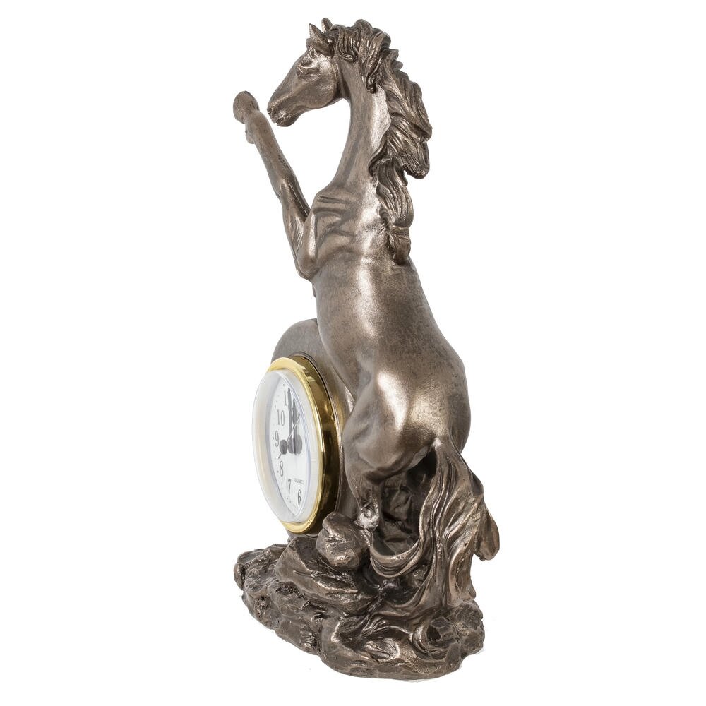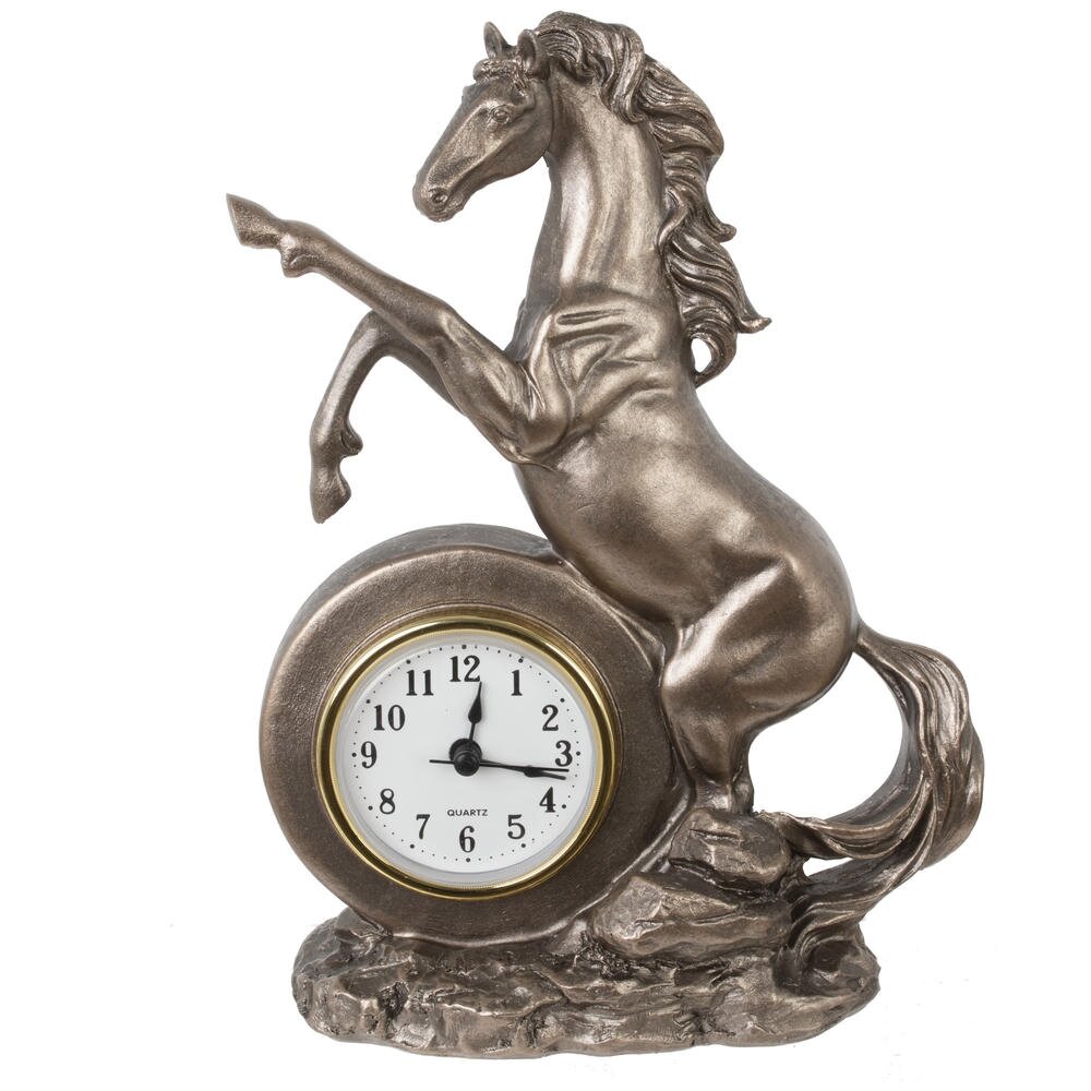 Ощутите ритм времени и неукротимую энергию с декоративной фигуркой "Лошадь" с часами — изысканным символом 2026 года, предназначенным для дома или офиса! Выполненная из прочного полистоуна в бронзовом цвете, эта стильная лошадка в динамичной позе олицетворяет силу, процветание и удачу в делах. Идеальна в качестве оригинальныого новогоднего подарка или как дополнение к интерьеру, она добавит шарм любому пространству. Наполните свой день магией — эта фигурка подарит гармонию и вдохновение на целый год!