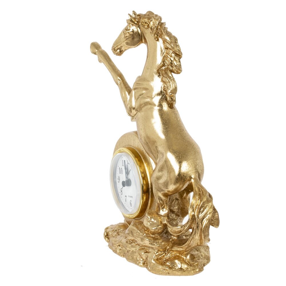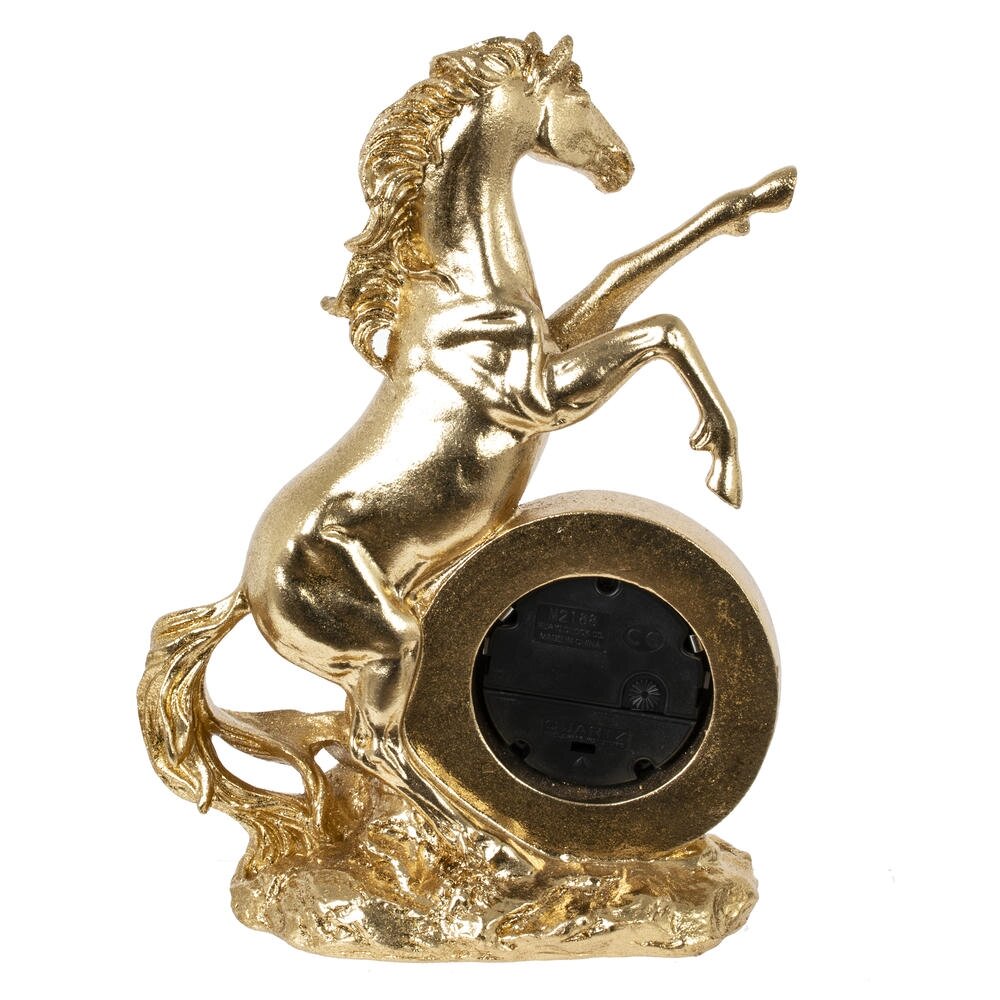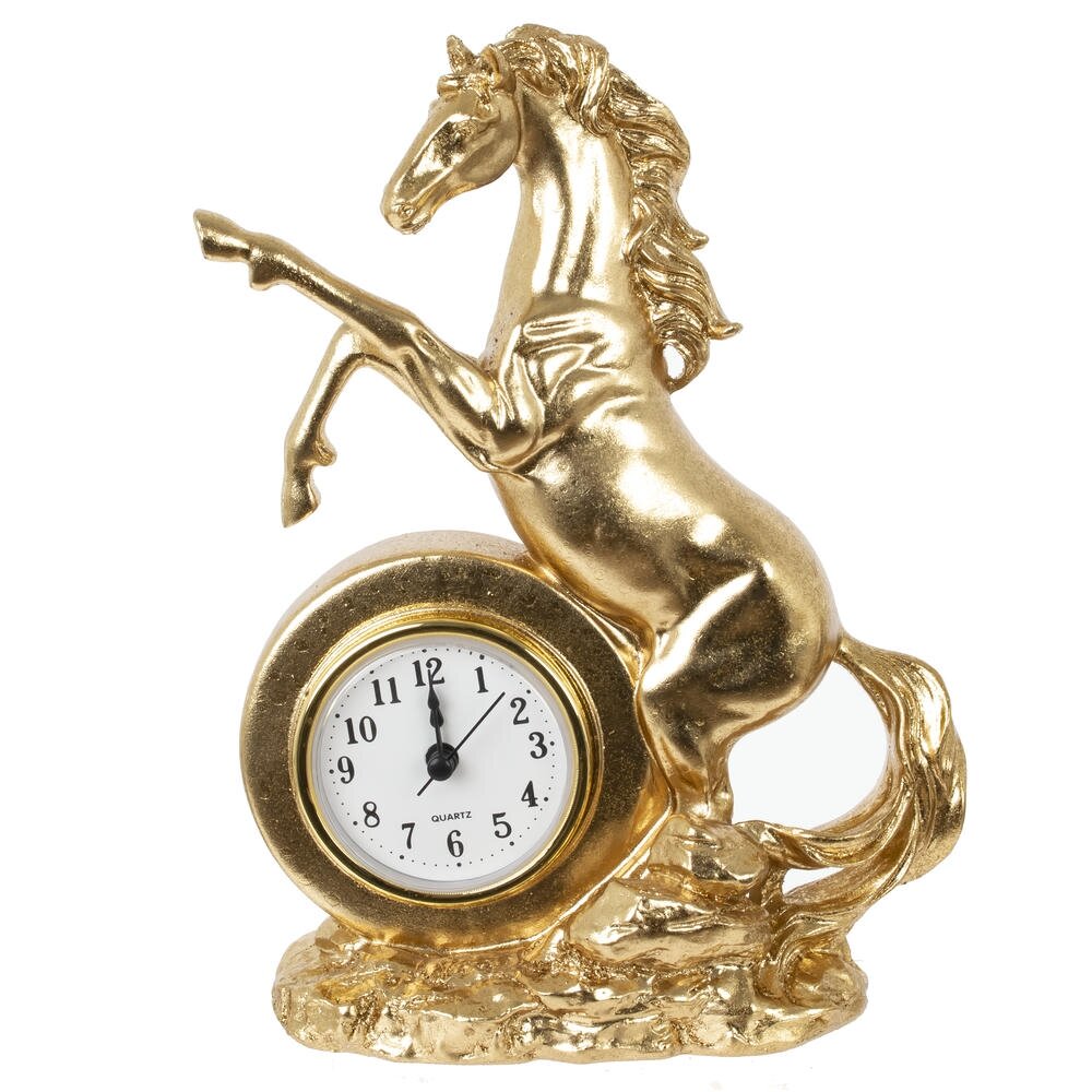 Ощутите ритм времени и неукротимую энергию с декоративной фигуркой "Лошадь" с часами — изысканным символом 2026 года, предназначенным для дома или офиса! Выполненная из прочного полистоуна в золотом цвете, эта стильная лошадка в динамичной позе олицетворяет силу, процветание и удачу в делах. Идеальна в качестве оригинальныого новогоднего подарка или как дополнение к интерьеру, она добавит шарм любому пространству. Наполните свой день магией — эта фигурка подарит гармонию и вдохновение на целый год!