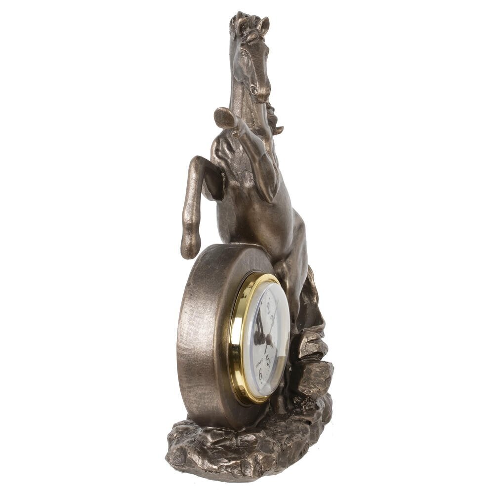 Ощутите ритм времени и неукротимую энергию с декоративной фигуркой "Лошадь" с часами — изысканным символом 2026 года, предназначенным для дома или офиса! Выполненная из прочного полистоуна в бронзовом цвете, эта стильная лошадка в динамичной позе олицетворяет силу, процветание и удачу в делах. Идеальна в качестве оригинальныого новогоднего подарка или как дополнение к интерьеру, она добавит шарм любому пространству. Наполните свой день магией — эта фигурка подарит гармонию и вдохновение на целый год!
