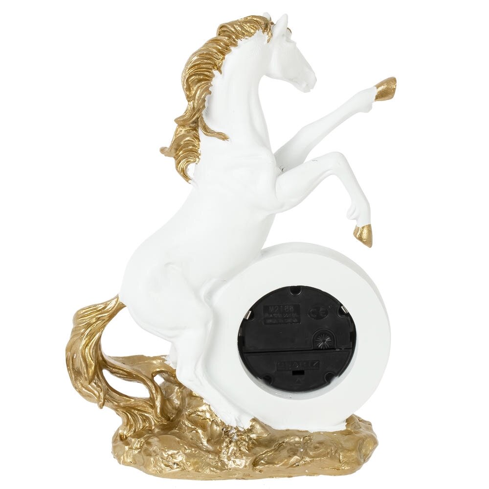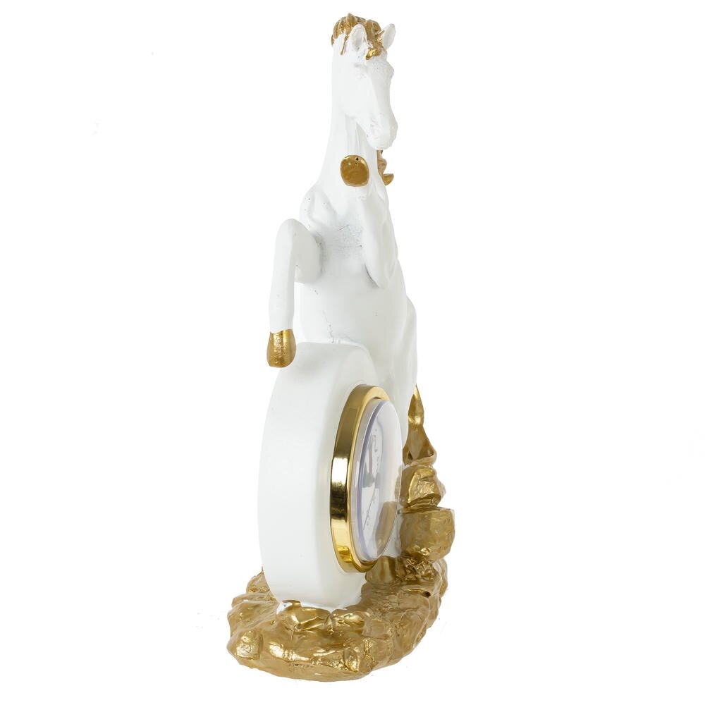 Ощутите ритм времени и неукротимую энергию с декоративной фигуркой "Лошадь" с часами — изысканным символом 2026 года, предназначенным для дома или офиса! Выполненная из прочного полистоуна в бело-золотом цвете, эта стильная лошадка в динамичной позе олицетворяет силу, процветание и удачу в делах. Идеальна в качестве оригинального новогоднего подарка или как дополнение к интерьеру, она добавит шарм любому пространству. Наполните свой день магией — эта фигурка подарит гармонию и вдохновение на целый год!