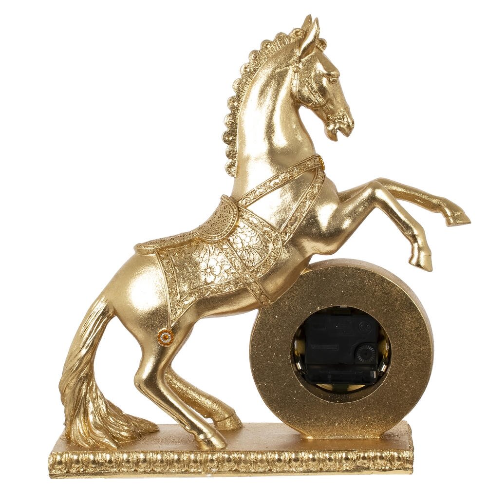 Ощутите ритм времени и неукротимую энергию со статуэткой "Лошадь" с часами — изысканным символом 2026 года, предназначенным для дома или офиса! Выполненная из прочного полистоуна в золотом цвете, эта стильная лошадка в динамичной позе олицетворяет силу, процветание и удачу в делах. Идеальна в качестве оригинального новогоднего подарка или как дополнение к интерьеру, она добавит шарм любому пространству. Упакована в картонную коробку с пенопластом для безопасной доставки. Наполните свой день магией — эта статуэтка подарит гармонию и вдохновение на целый год!