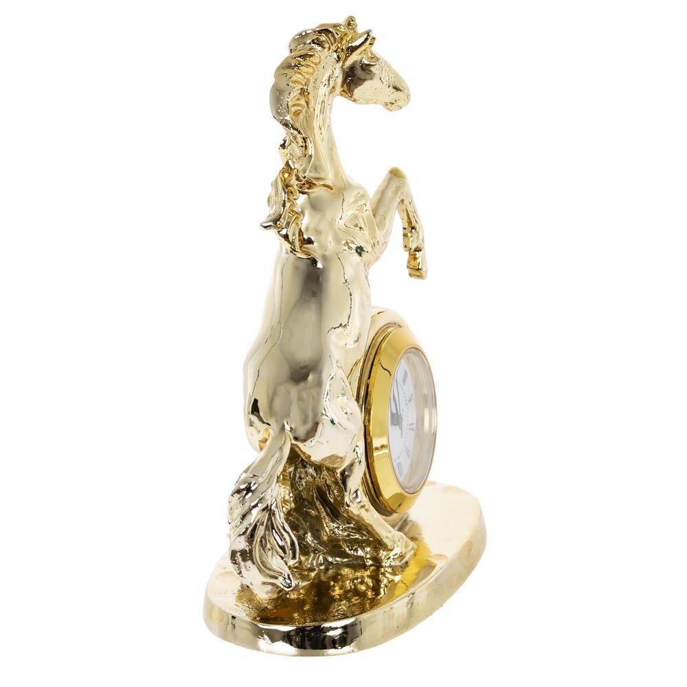 Ощутите ритм времени и неукротимую энергию с декоративной фигуркой "Лошадь" с часами — изысканным символом 2026 года, предназначенным для дома или офиса! Выполненная из прочного полистоуна в золотом металлике, эта стильная лошадка в динамичной позе олицетворяет силу, процветание и удачу в делах. Идеальна в качестве оригинальныого новогоднего подарка или как дополнение к интерьеру, она добавит шарм любому пространству. Наполните свой день магией — эта фигурка подарит гармонию и вдохновение на целый год!