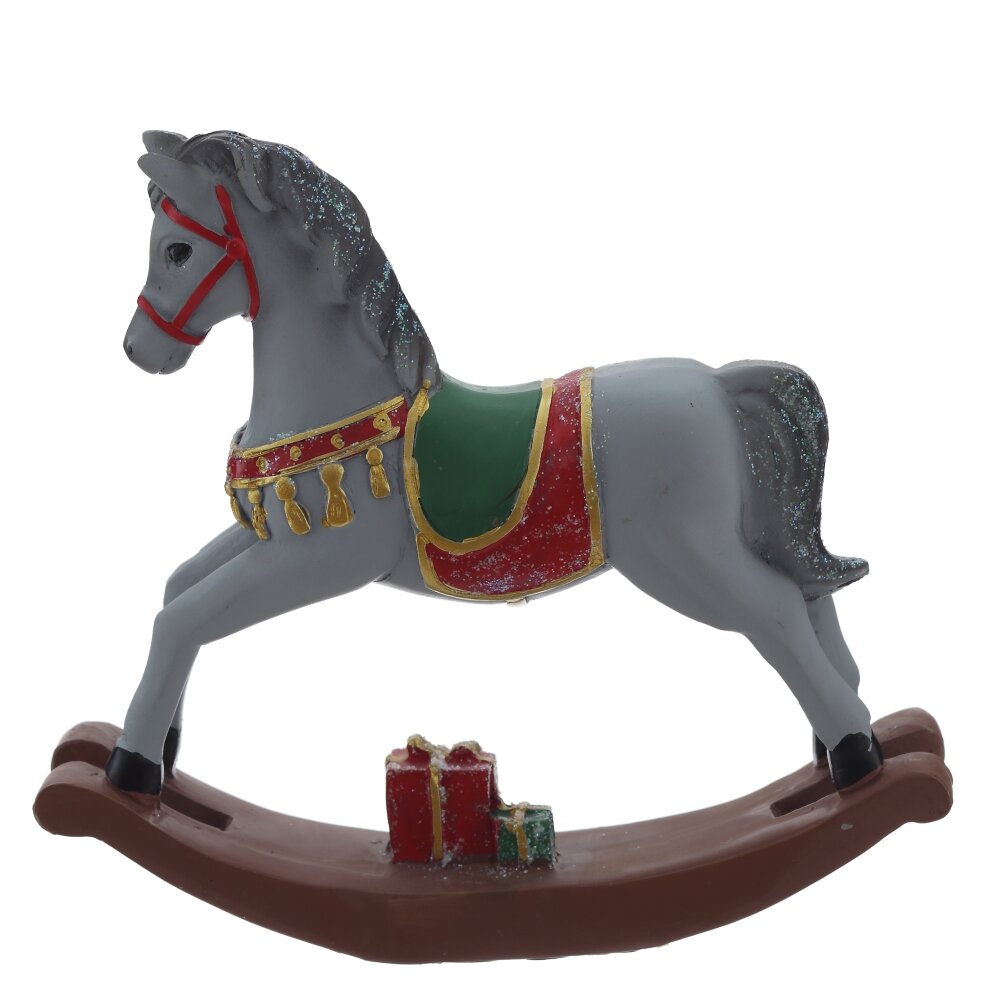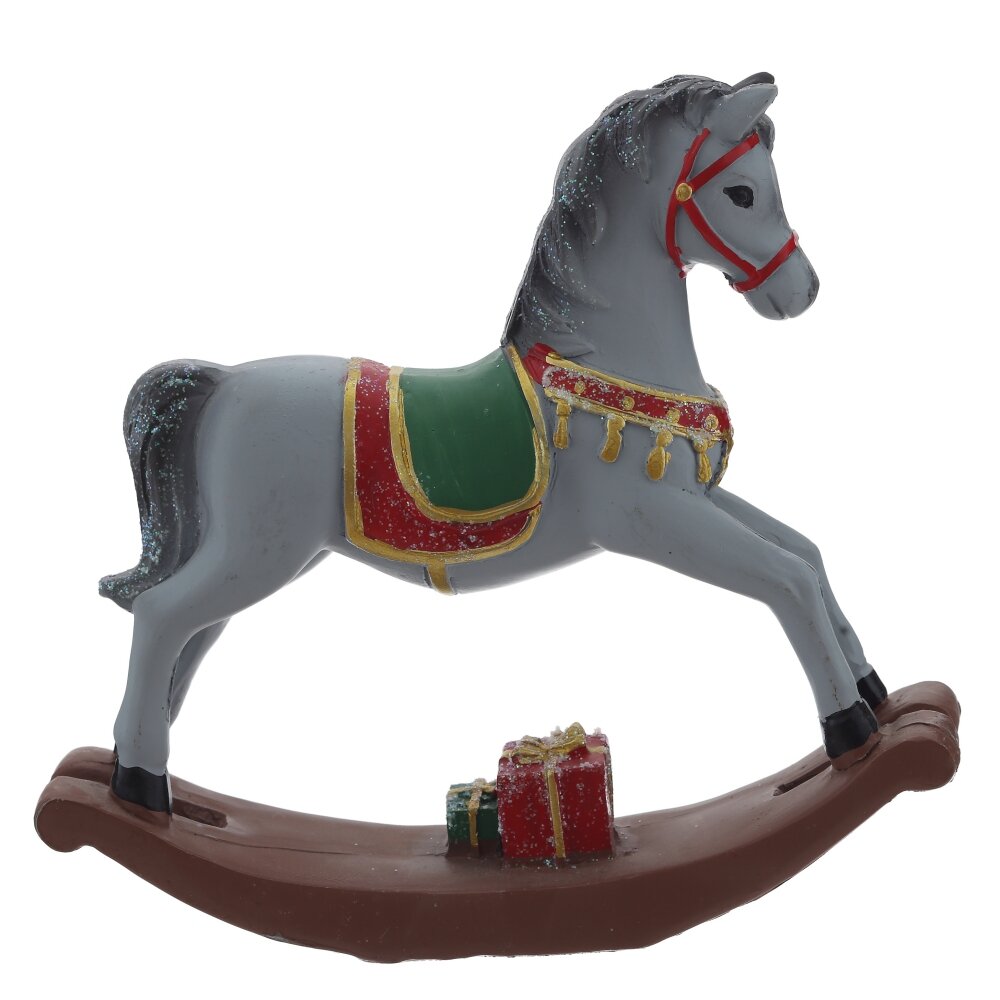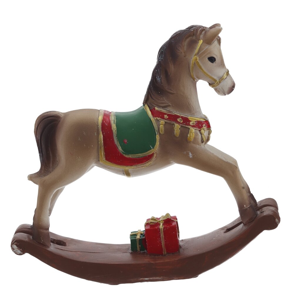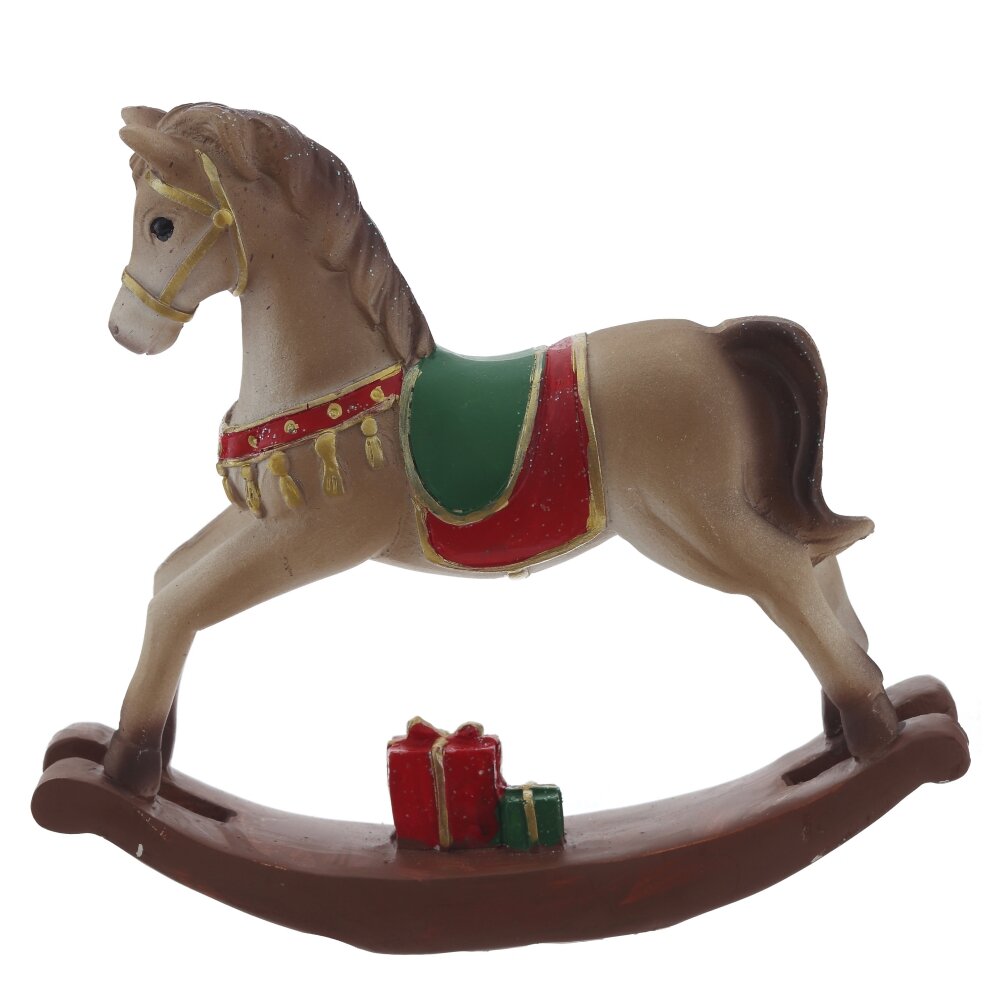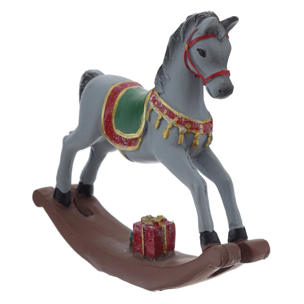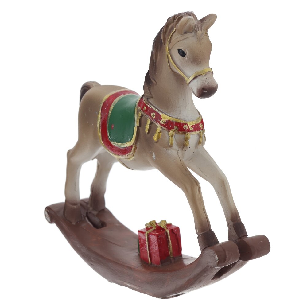 Декоративная фигурка "Лошадка" — это изысканный элемент интерьера в стиле ретро. Она выполнена из полистоуна и представляет собой классическую лошадку-качалку с изящными деталями. Белый цвет, украшения на седле и золотистая отделка придают этому предмету очарование и элегантность. Эта лошадка станет замечательным акцентом в любом уголке вашего дома, добавляя ностальгический уют и придавая атмосферу детства.