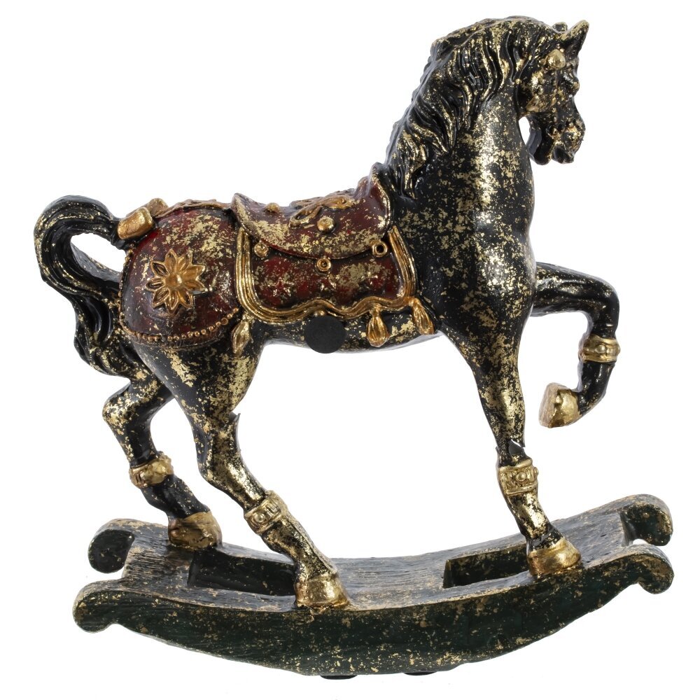 Декоративная фигурка "Лошадка-качалка" — стильный и символичный элемент декора, который станет прекрасным подарком к Новому году или талисманом на удачу. Выполненная из прочных полимерных материалов и окрашенная в черно-золотой цвет, фигурка символизирует энергию, силу и процветание. Лошадь традиционно ассоциируется с удачей и успехом в делах. Идеально подойдёт для оформления интерьера дома или офиса, а также станет оригинальным дополнением к новогодней композиции. Этот стильный сувенир будет радовать вас и ваших близких.