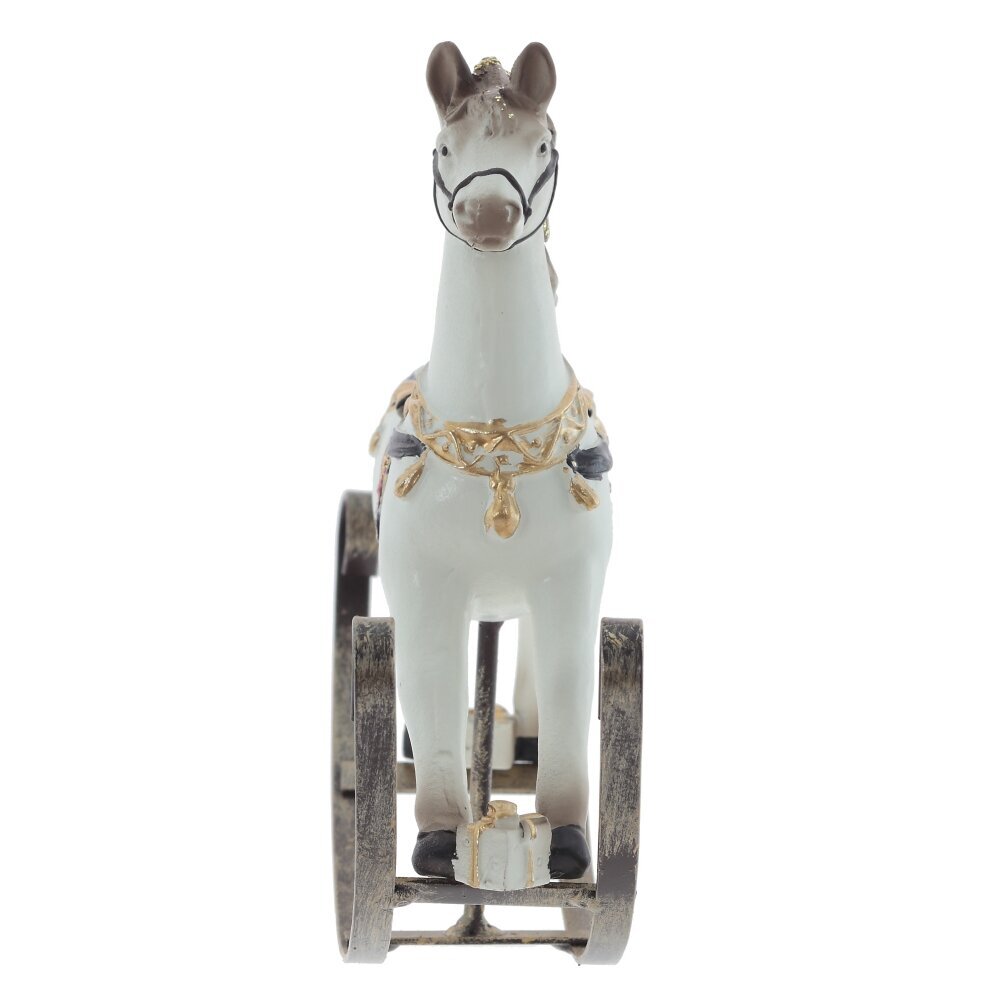 Фигурка изображает лошадку-качалку белого цвета. Ее можно использовать как для украшения комнаты, так и для дополнения новогодней сервировки стола. Станет прекрасным подарком к Новому году и Рождеству.