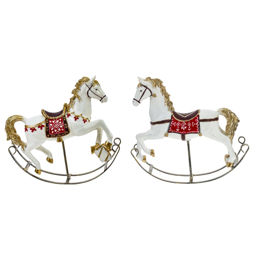 Декоративная фигурка "Лошадка" — это изысканный элемент интерьера в стиле ретро. Она выполнена из полистоуна и представляет собой классическую лошадку-качалку с изящными деталями. Белый цвет, золотисные украшения на красном седле и золотая грива придают этому предмету очарование и элегантность. Эта лошадка станет замечательным акцентом в любом уголке вашего дома, добавляя ностальгический уют и придавая атмосферу детства.