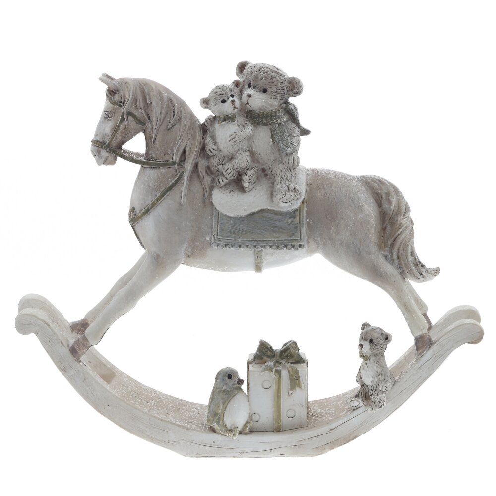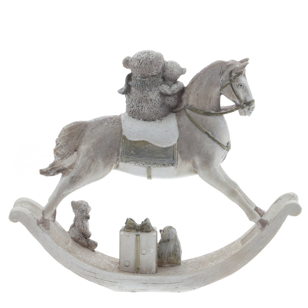 Эта декоративная фигурка "Лошадка-качалка" с очаровательными мишками на спине привлечет внимание своим изяществом и высоким уровнем детализации. Детская лошадка-качалка создает атмосферу игривости и невинности, милые плюшевые мишки добавляют уюта, а аксессуары и забавные детали подчеркивают атмосферу праздника. Эта фигурка станет приятным подарком и ярким акцентом в любом новогоднем оформлении.