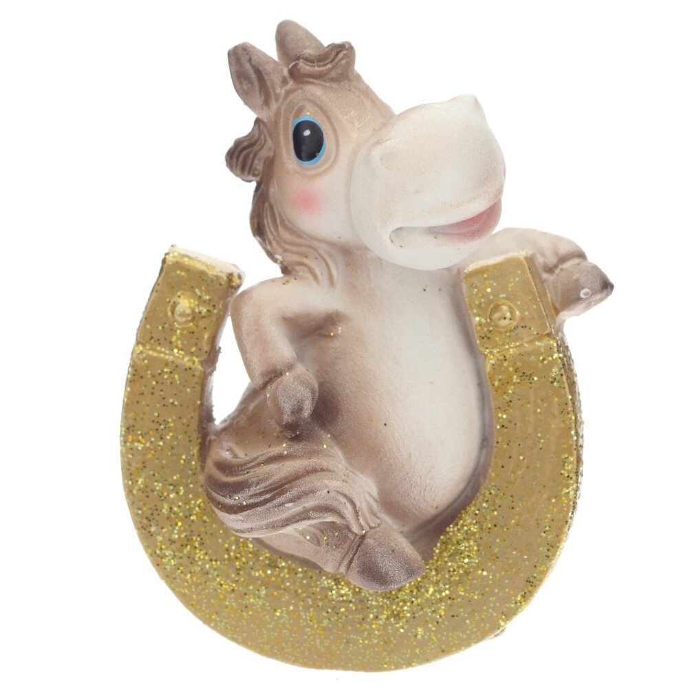 Декоративная фигурка "Лошадка с подковой" — стильный и символичный элемент декора, который станет прекрасным подарком к Новому году или талисманом на удачу. Выполненная из прочного полимерного материала, фигурка символизирует энергию, силу и процветание. Лошадка с подковой традиционно ассоциируется с удачей и успехом в делах. Идеально подойдёт для оформления интерьера дома или офиса, а также станет оригинальным дополнением к новогодней композиции. Этот стильный сувенир будет радовать вас и ваших близких весь год. Фигурка представлена в 4-х видах.