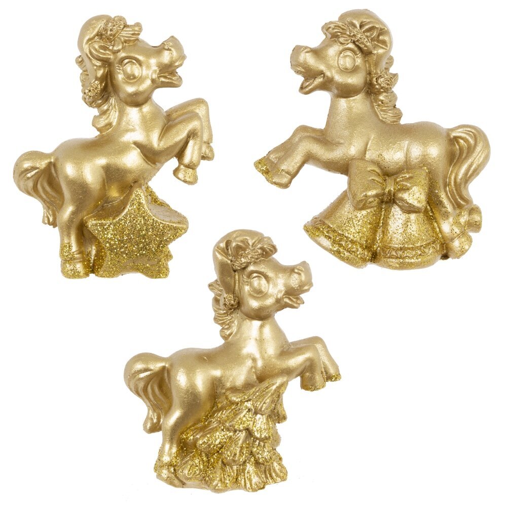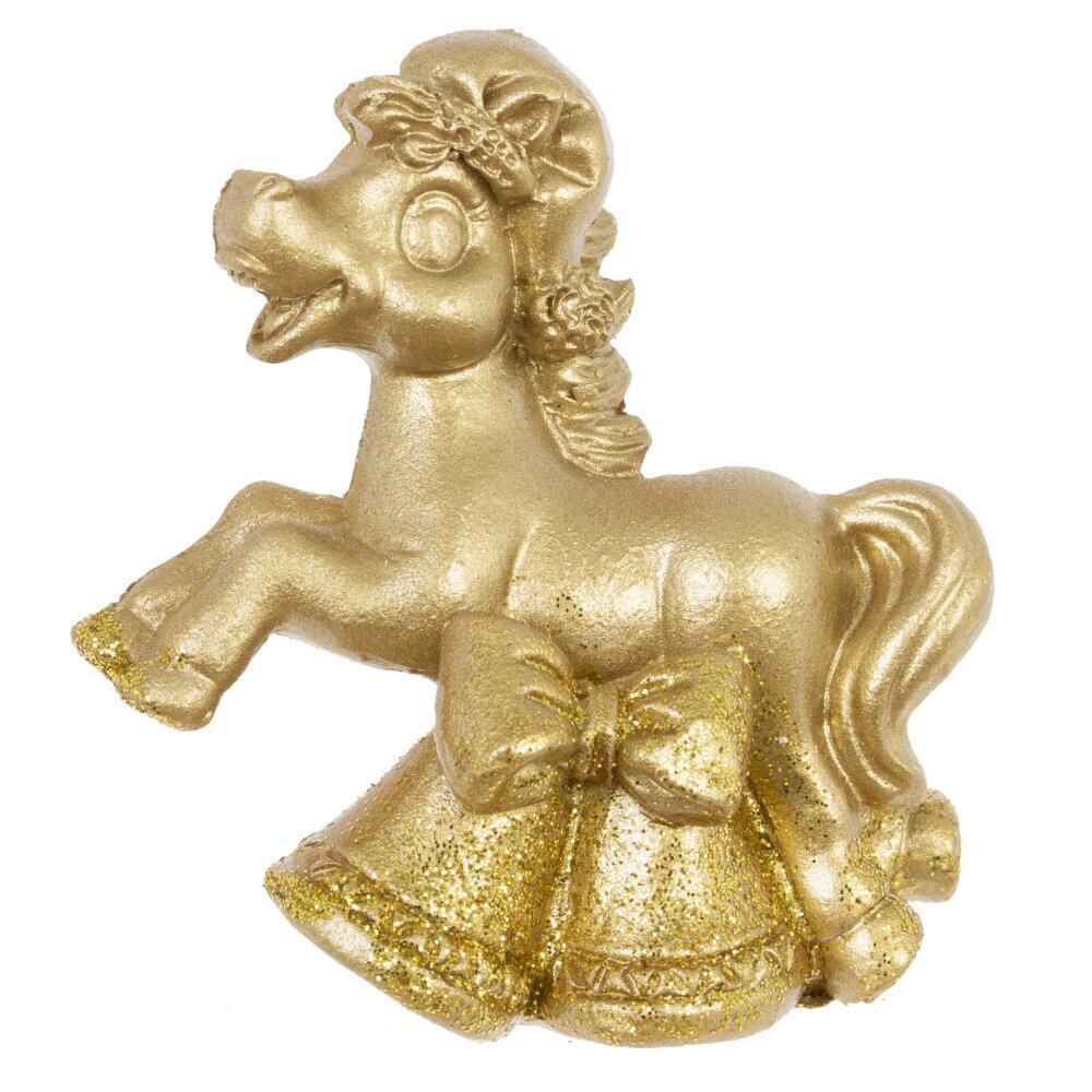 Декоративная фигурка "Лошадка" — стильный и символичный элемент декора, который станет прекрасным подарком к Новому году или талисманом на удачу. Выполненная из прочного полимерного материала и окрашенная в изысканный золотой цвет, фигурка символизирует энергию, силу и процветание. Лошадка традиционно ассоциируется с удачей и успехом в делах. Идеально подойдёт для оформления интерьера дома или офиса, а также станет оригинальным дополнением к новогодней композиции. Этот стильный сувенир будет радовать вас и ваших близких весь год. Фигурка представлена в трех видах.