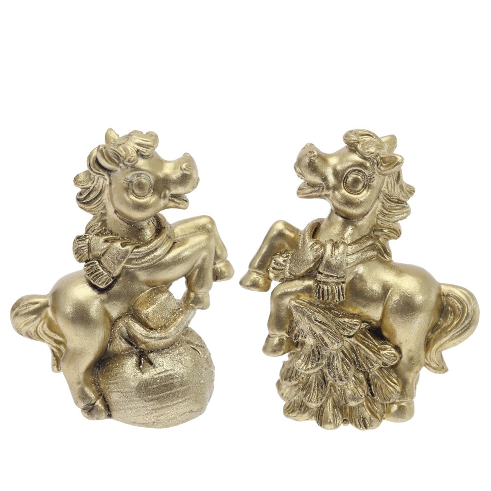 Декоративная фигурка "Лошадка" — стильный и символичный элемент декора, который станет прекрасным подарком к Новому году или талисманом на удачу. Выполненная из прочного полимерного материала и окрашенная в изысканный золотой цвет, фигурка символизирует энергию, силу и процветание. Лошадка традиционно ассоциируется с удачей и успехом в делах. Идеально подойдёт для оформления интерьера дома или офиса, а также станет оригинальным дополнением к новогодней композиции. Этот стильный сувенир будет радовать вас и ваших близких весь год. Фигурка представлена в двух видах.