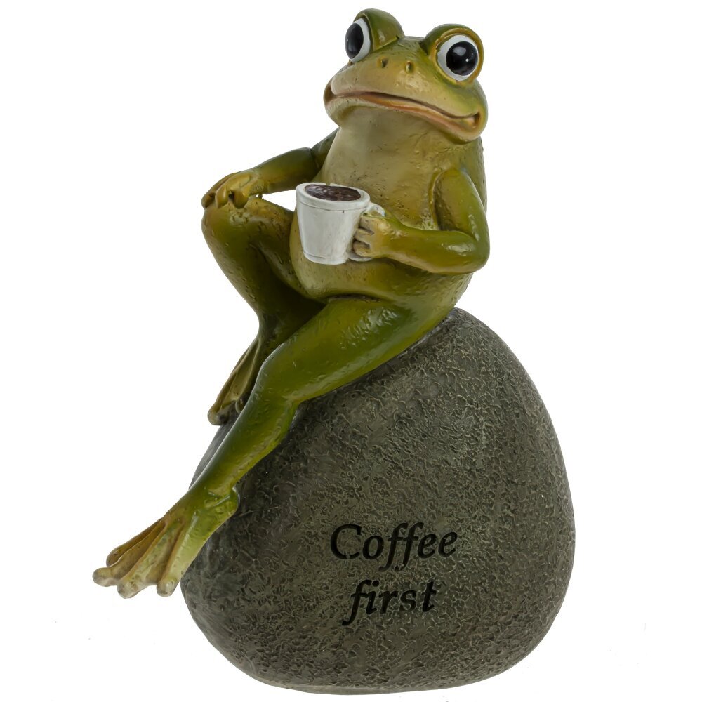 Эта очаровательная фигурка лягушки с чашкой кофе станет настоящим символом уюта и комфорта в вашем доме или офисе. Выполненная из прочного материала с нежными оттенками зелени, она притягивает внимание своей милой мордочкой. Лягушка сидит на камне, на котором выгравировано простое послание "coffee first" - это напоминание о том, что наслаждение ароматным кофе должно стать первым и самым важным моментом в начале каждого дня. Фигурка подарит вам ощущение уюта и домашнего тепла и станет отличным напоминанием о необходимости наслаждаться каждым моментом жизни.