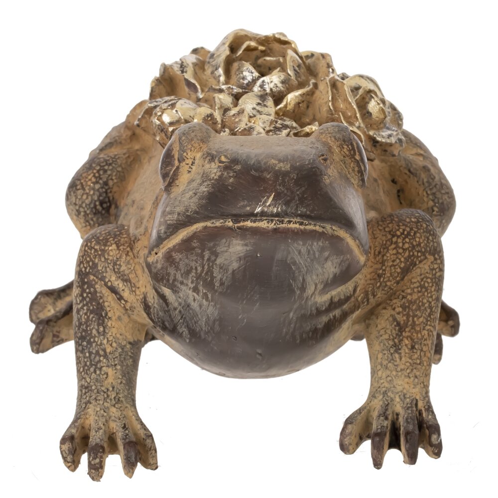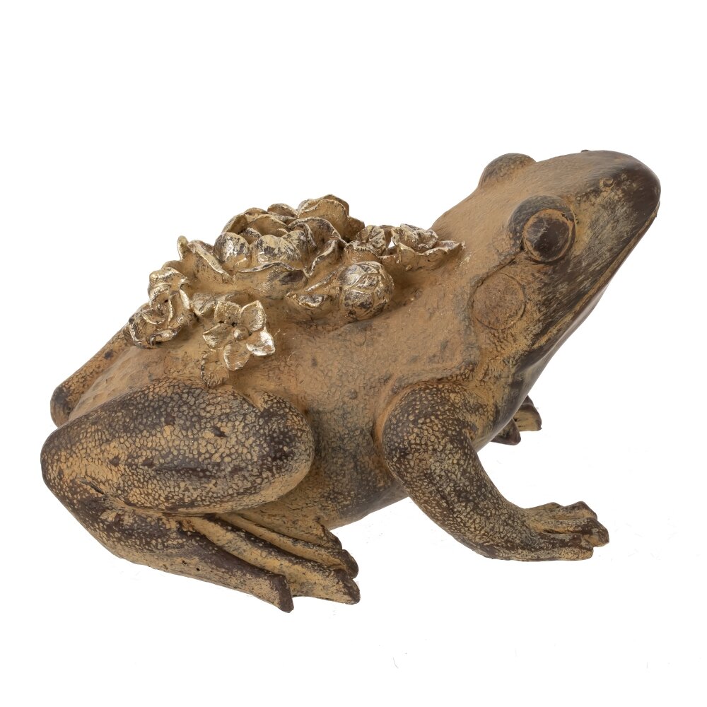 Эта декоративная фигурка в виде лягушки станет изысканным украшением для вашего интерьера. Выполнена из прочных полимерных материалов, она надежна и долговечна. Детализированная текстура придаёт реалистичность, а золотистые цветы на спине добавляют элегантности и оригинальности. Идеально подойдет для любителей необычного декора, создавая уютную атмосферу. Отличный выбор для подарка друзьям или близким, особенно тем, кто увлекается тематикой природы и животных. Украсьте свой дом этой милой фигуркой!