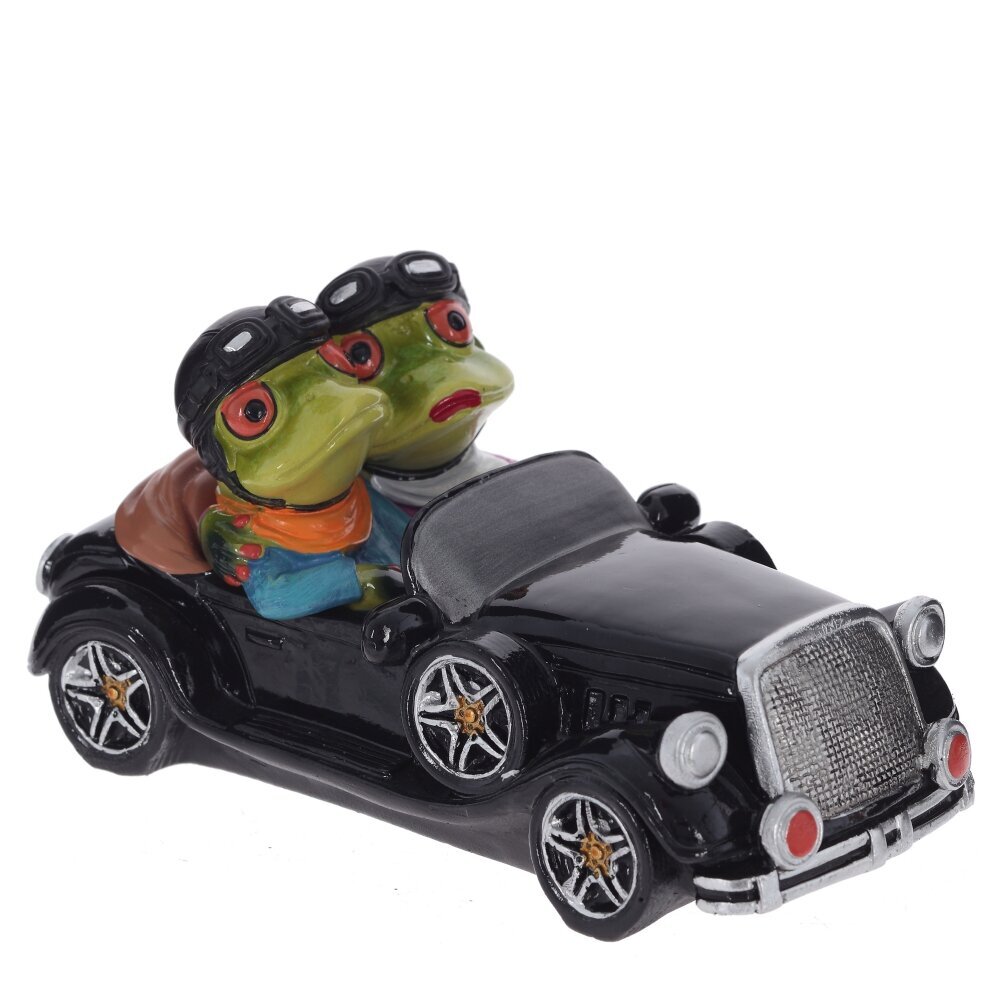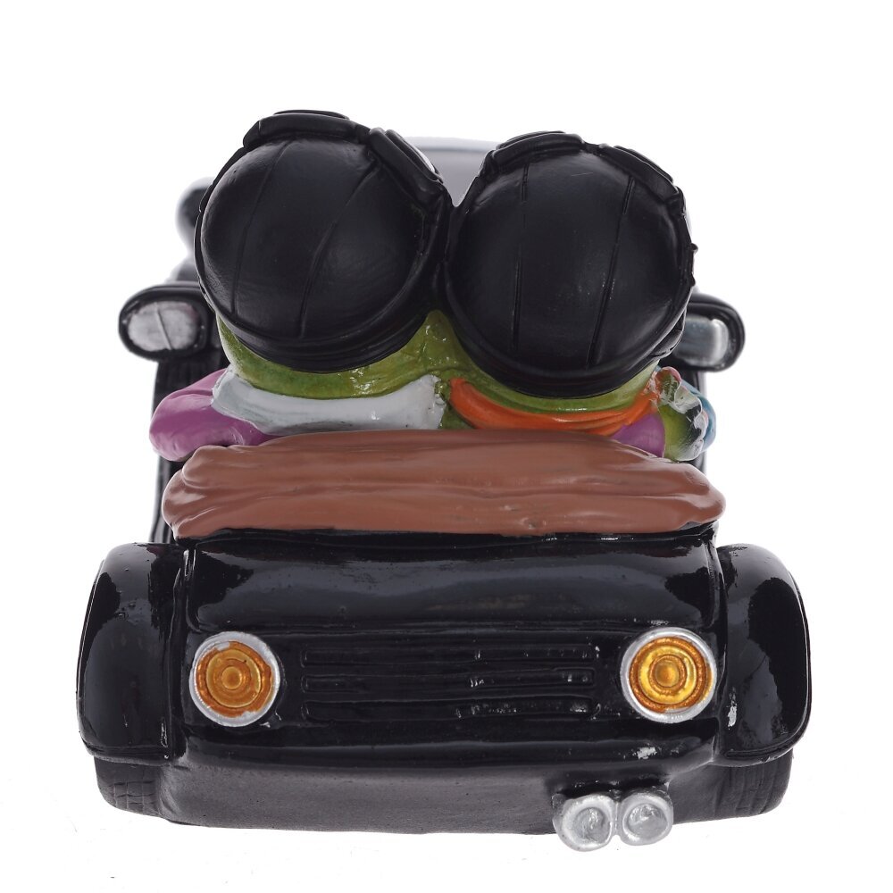 Декоративная фигурка "Лягушки" изображает двух забавных лягушек, сидящих в черной машине. Они выглядят весело и беззаботно, будто отправляются в увлекательное путешествие или на приключение. Данная фигурка может стать замечательным элементом декора в доме или офисе, добавляя игривости и уникальности интерьеру. Реалистичные детали и оригинальный сюжет делают эту фигурку привлекательной для любителей необычных предметов. Поместив ее на полку или стол, вы создадите атмосферу веселья и позитива в вашем пространстве. Эта фигурка также может служить отличным подарком для ценителей юмора и оригинальных вещей.