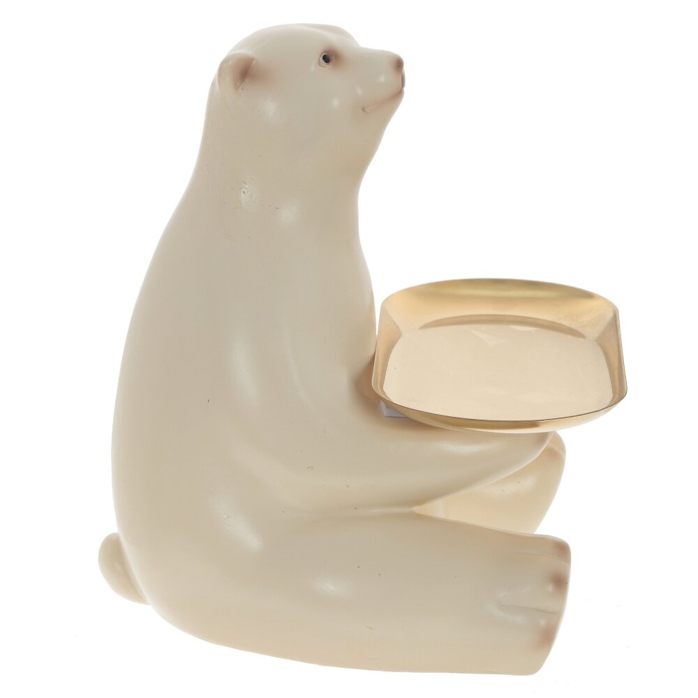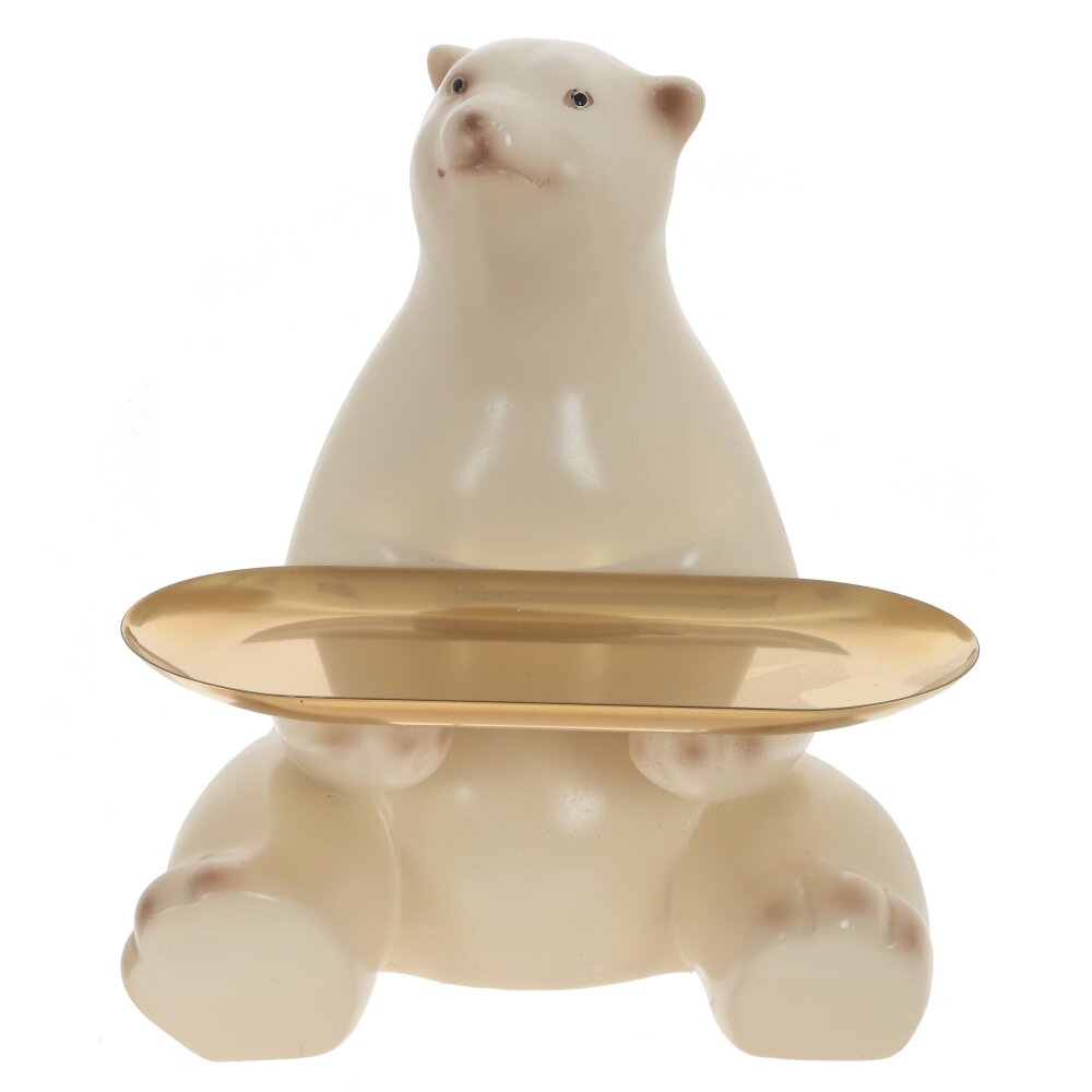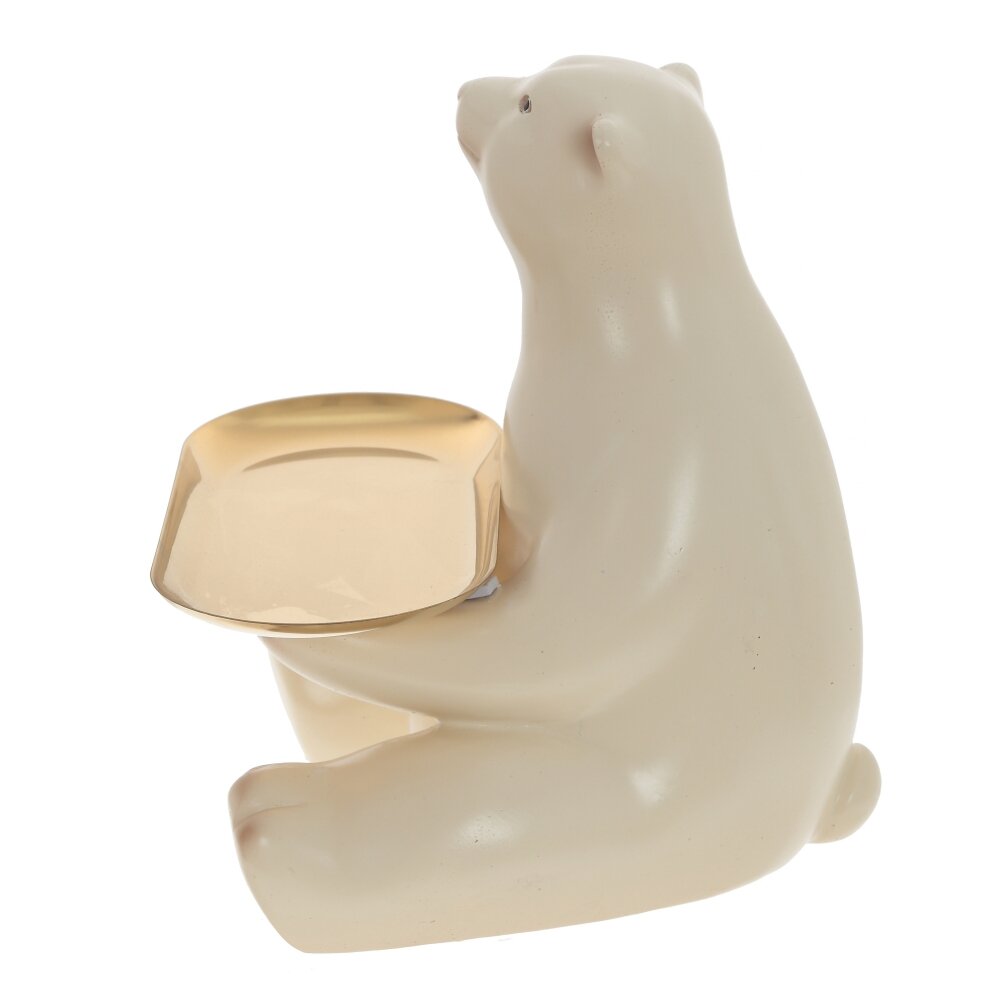 Эта декоративная фигурка изображает милого белого медведя, держащего в лапах золотой поднос. Фигурка демонстрирует превосходное качество и детализацию, с нежными цветами и чистыми линиями.