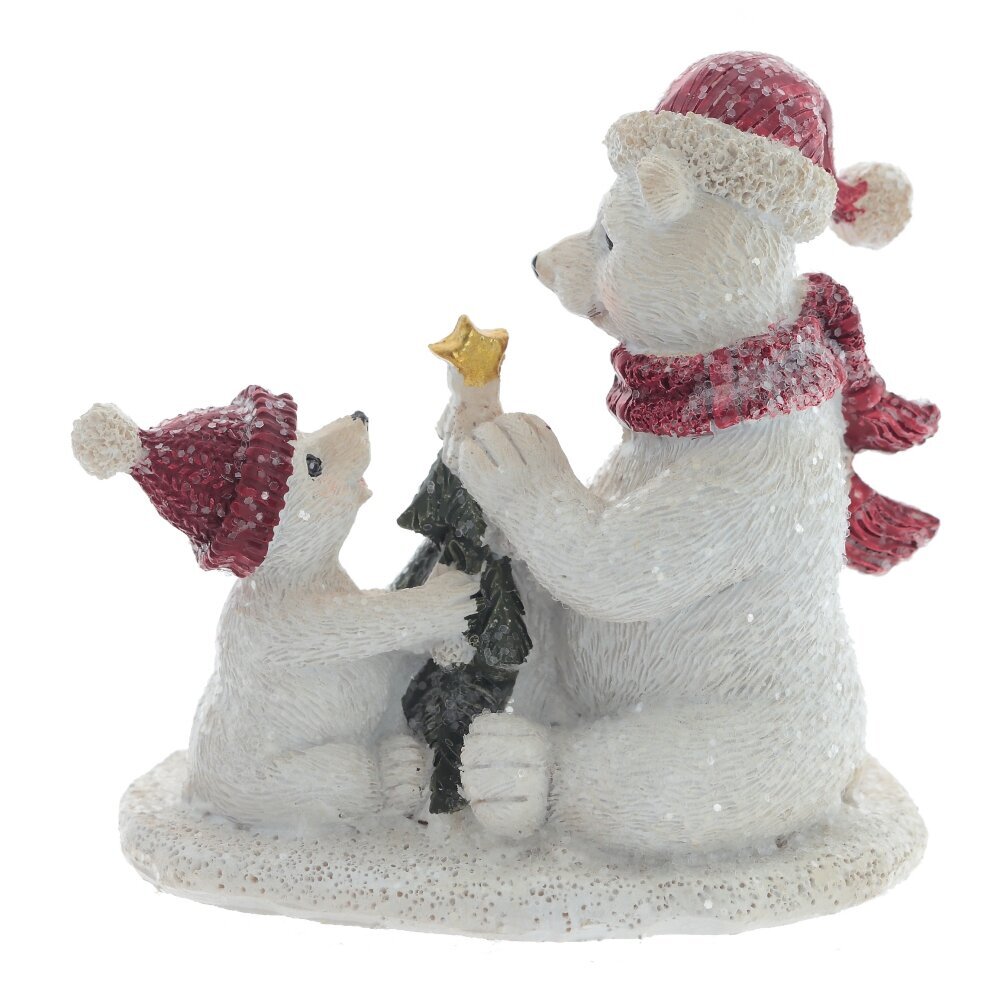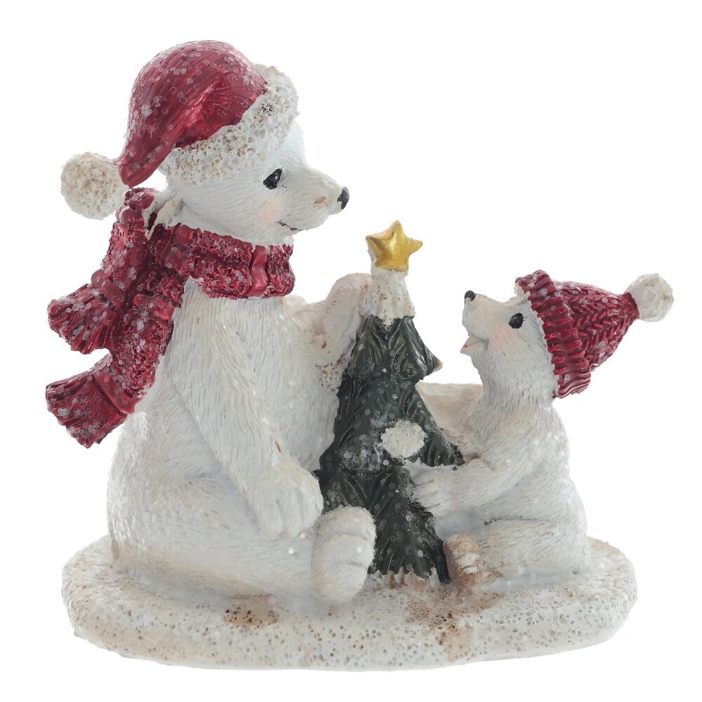 Декоративная фигурка "Медвежата" выполнена из полистоуна и изображает очаровательную сцену, где два белых медвежонка с нежностью наряжают новогоднюю елку. Внимание к деталям поражает: каждый мишка облачен в зимние аксессуары, которые делают сюжет особенно милым. Блестящий глиттер создает волшебное настроение праздника. Эта фигурка станет замечательным украшением вашего интерьера, принесет атмосферу радости и тепла в зимние месяцы.