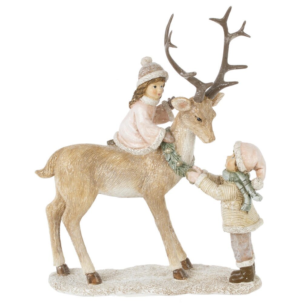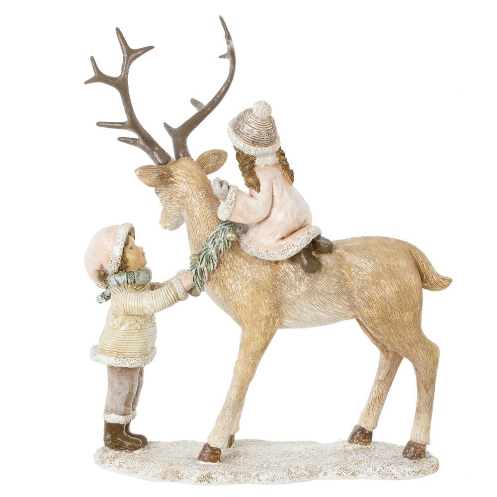 Встречайте Новый год с очаровательной декоративной фигуркой, которая принесет в ваш дом праздничную атмосферу сказки! Композиция выполнена из качественных материалов, что делает ее прочной и долговечной. Она гармонично впишется в любой интерьер и создаст атмосферу новогоднего волшебства и радости. Поставьте ее на каминную полку, на праздничный стол или на полку с другими новогодними украшениями. Фигурка оленя и детей станет отличным украшением для новогоднего декора и подарит вам незабываемые впечатления от праздника!