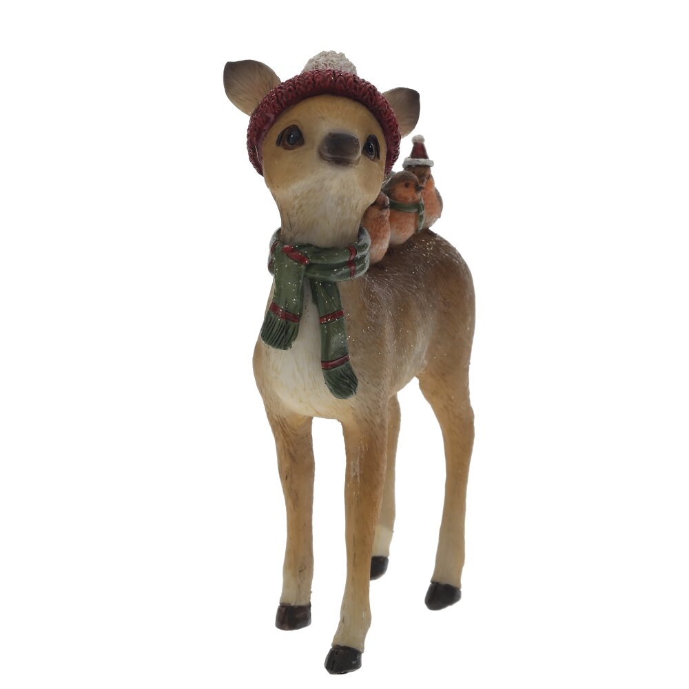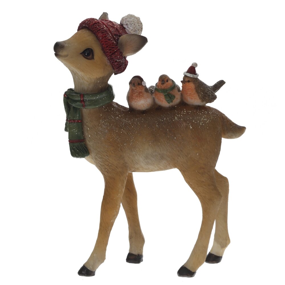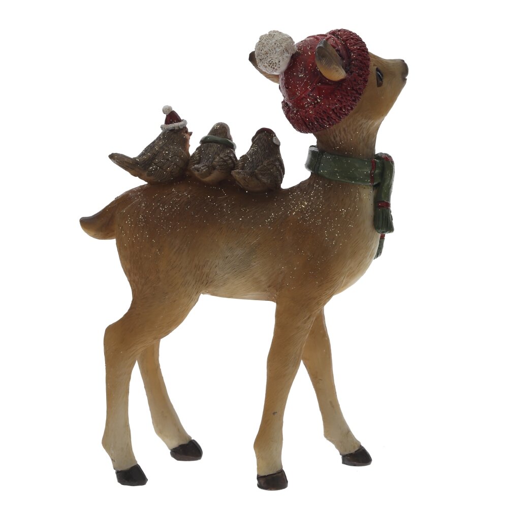 Декоративная фигурка "Олень" из полистоуна станет чудесным акцентом в вашем новогоднем интерьере. Очаровательный олененок в яркой шапочке мечтательно смотрит вдаль, на его спине уютно устроились маленькие птички. Высокая детализация придаёт композиции уникальность. Этот милый сувенир создаёт уютную атмосферу праздника и идеально подходит в качестве подарка для близких, добавляя в дом волшебство Нового года.