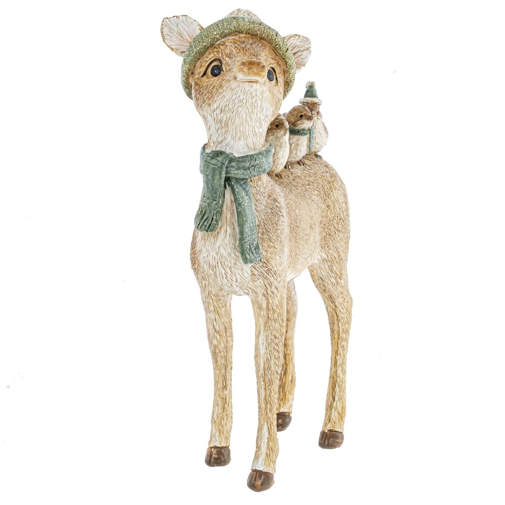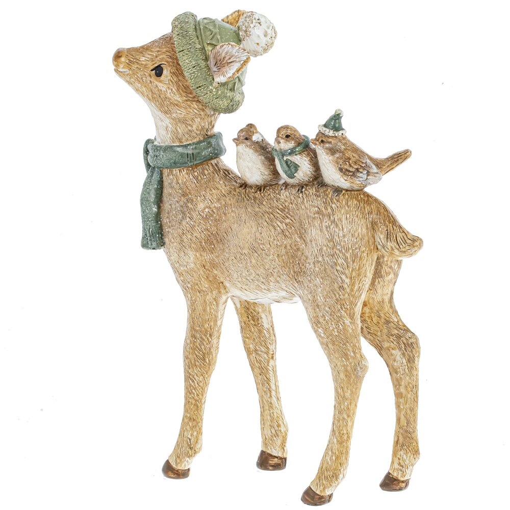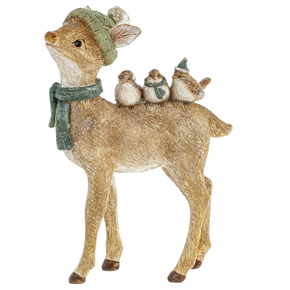 Замечательная фигурка милого Олененка с лесными друзьями для новогоднего и рождественского оформления. Может уютно расположиться на камоде, у елки вместе с новогодними подарками или украсить новогодний стол.