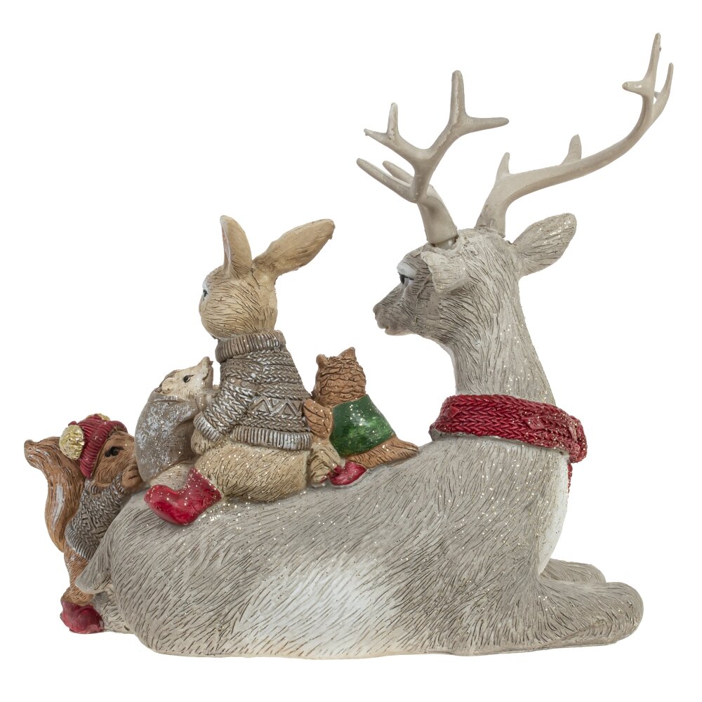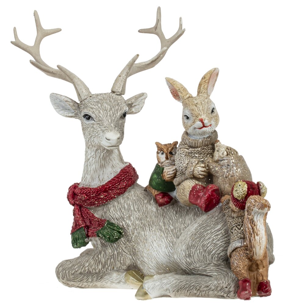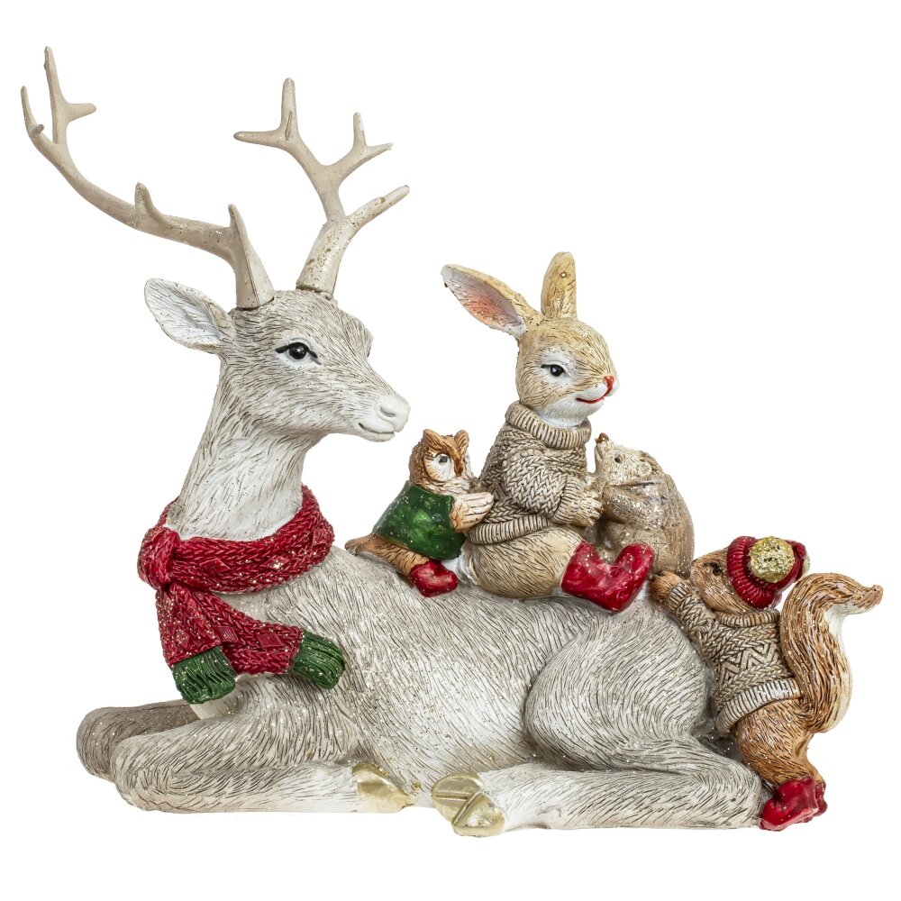 Декоративная новогодняя фигурка Оленя с лесными друзьями станет прекрасным дополнением в вашем интерьере и наполнит частичкой тепла ваш дом.