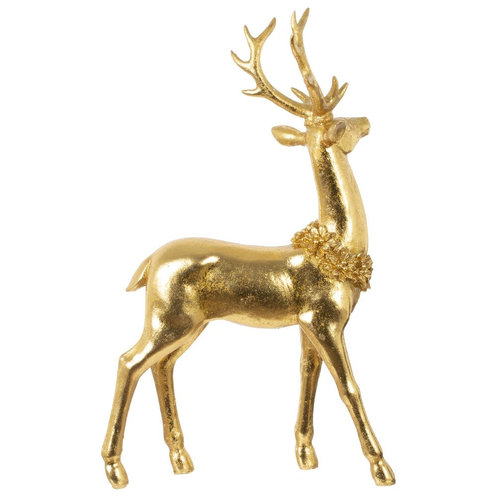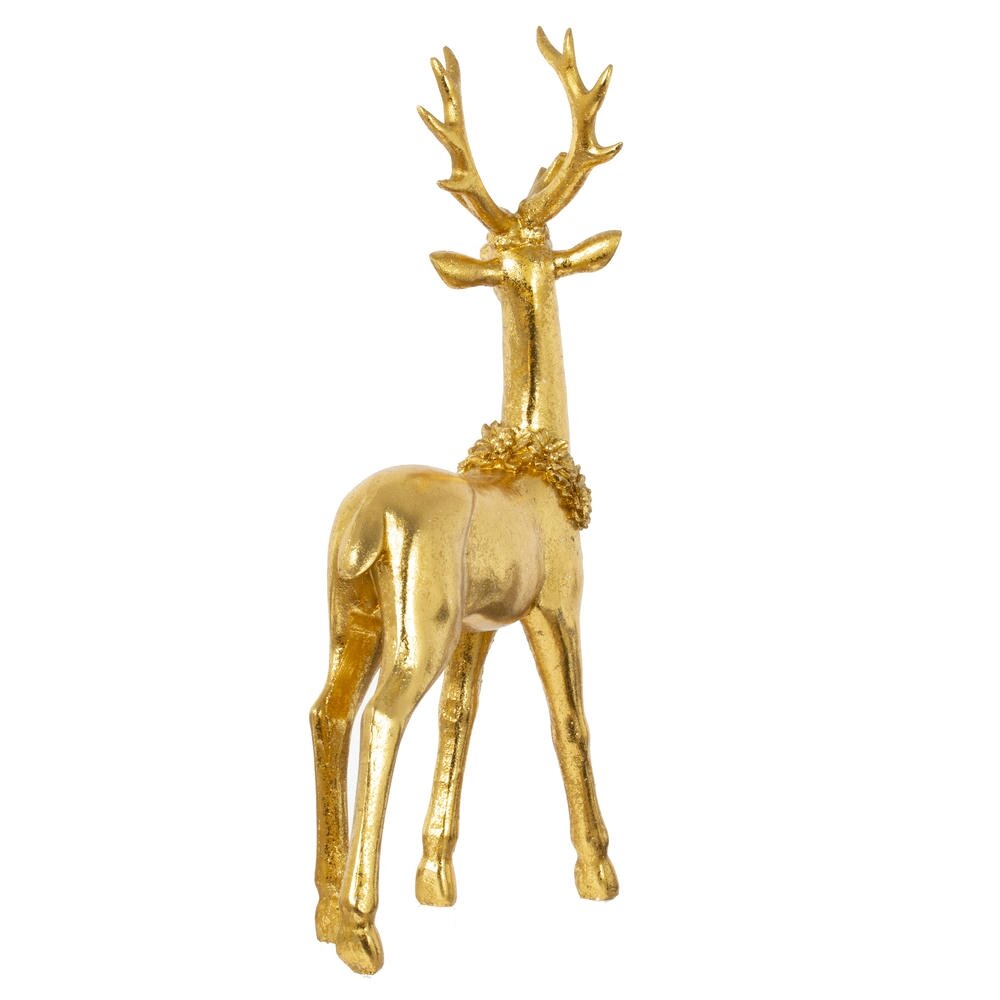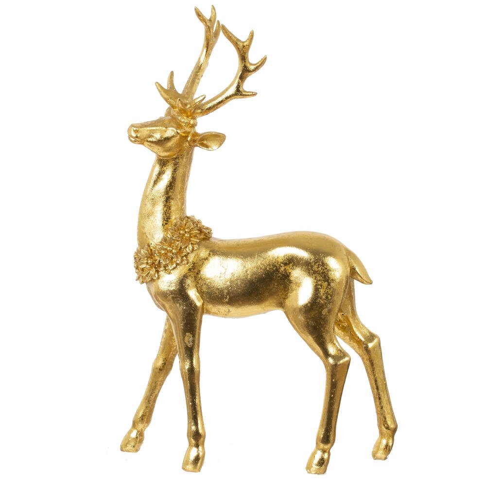 Декоративная фигурка "Олень" — изысканное новогоднее украшение, которое добавит в интерьер атмосферу уюта и волшебства. Выполненный в элегантном золотом цвете, олень символизирует благородство и зимние праздники. Нарядный венок на шее придаёт композиции праздничное настроение и завершённый образ. Такая фигурка станет ярким акцентом на камине, полке, под ёлкой или в новогодней композиции на столе. Благодаря стильному дизайну и универсальному цвету, она легко впишется в любой интерьер — от классики до современного минимализма. Это не просто элемент декора, а настоящий символ тепла, гармонии и ожидания чуда. Подходит для подарка родным, друзьям или коллегам, ведь такие детали создают ту самую праздничную атмосферу, которую мы ждём весь год.