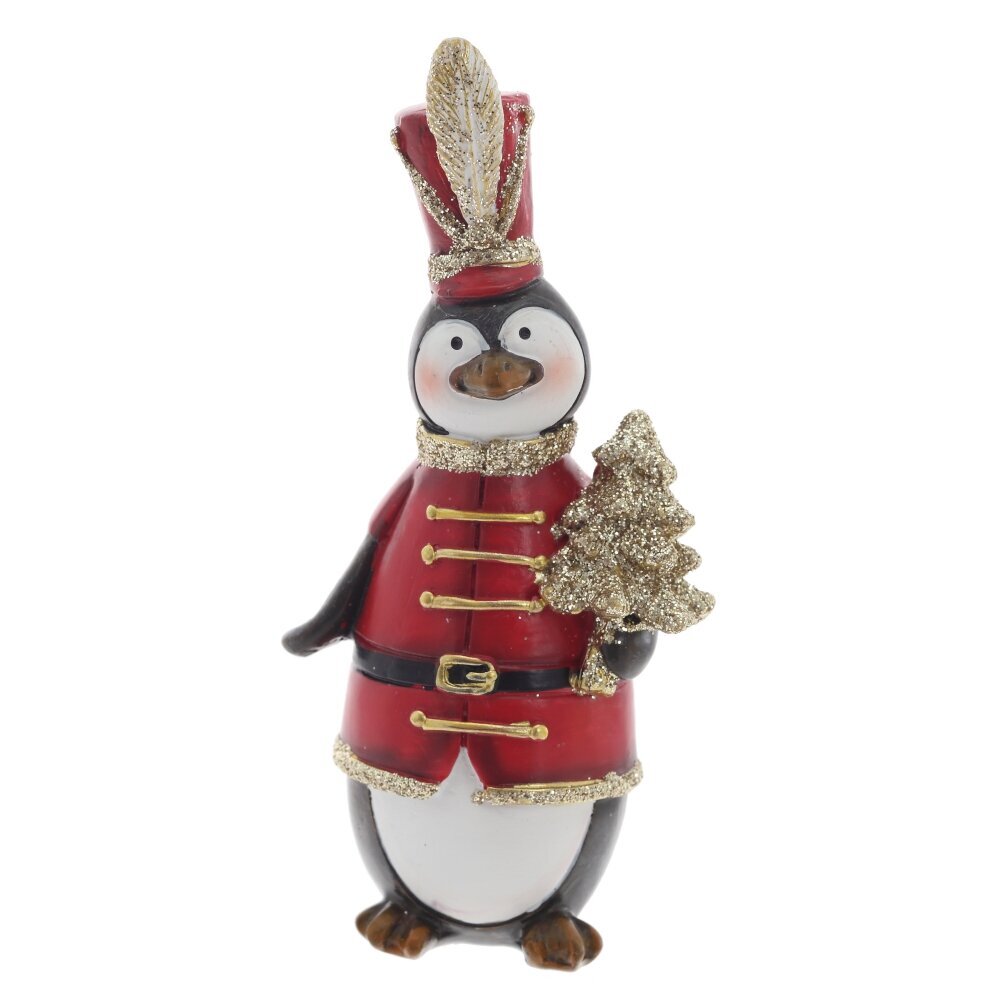 Необычная декоративная фигурка пингвина в образе гусара — оригинальное украшение, которое придаст вашему интерьеру нотку юмора и праздничного настроения. Выполненная из прочных полимерных материалов, фигурка сочетает в себе традиционные черты гусарской формы и узнаваемый образ милого пингвина. Яркий мундир с позолоченными элементами, высокая шапка и уверенная осанка делают этого пингвина настоящим героем новогодней композиции. Благодаря качественной проработке деталей и стойкости материала, фигурка будет радовать вас не один сезон. Идеальна для украшения полок, каминов или праздничного стола, а также станет отличным и запоминающимся подарком с характером.