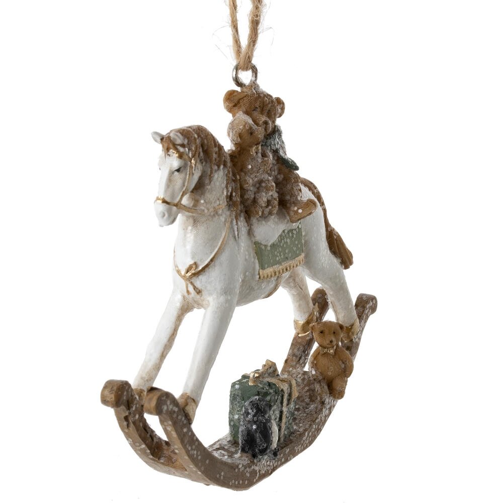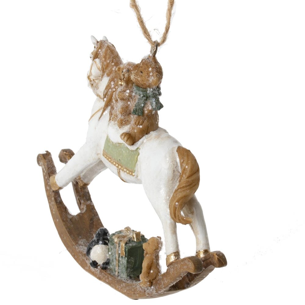 Декоративная фигурка "Лошадка-качалка" с подвесом — стильный и символичный элемент декора, который станет прекрасным подарком к Новому году или талисманом на удачу. Выполненная из полимерных материалов и окрашенная в белый цвет, фигурка символизирует энергию, силу и процветание. Лошадь традиционно ассоциируется с удачей и успехом в делах. Идеально подойдёт для оформления интерьера дома или офиса, а также станет оригинальным дополнением к новогодней композиции. Этот стильный сувенир будет радовать вас и ваших близких.