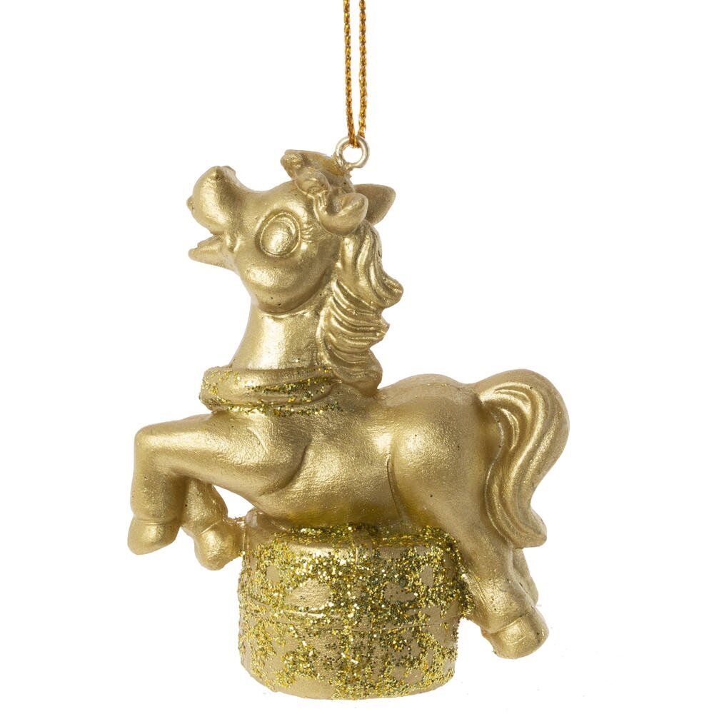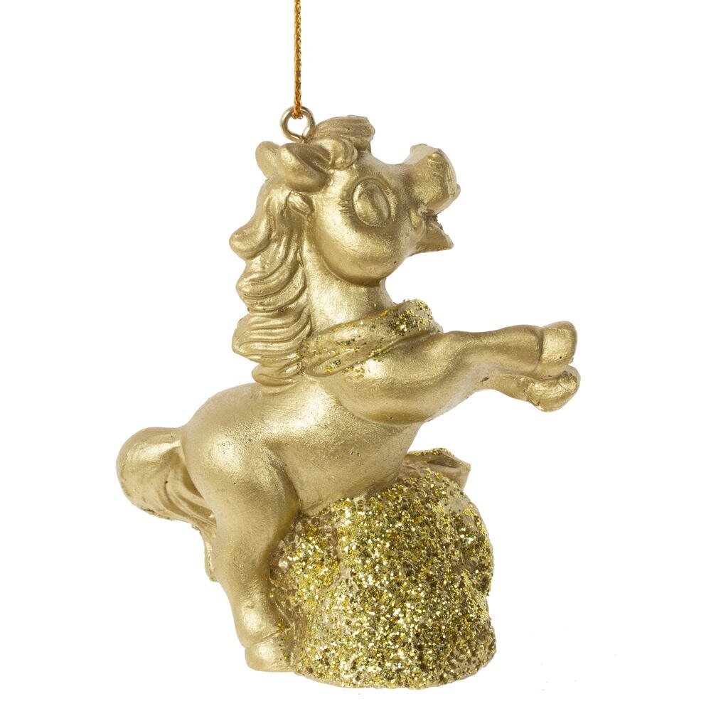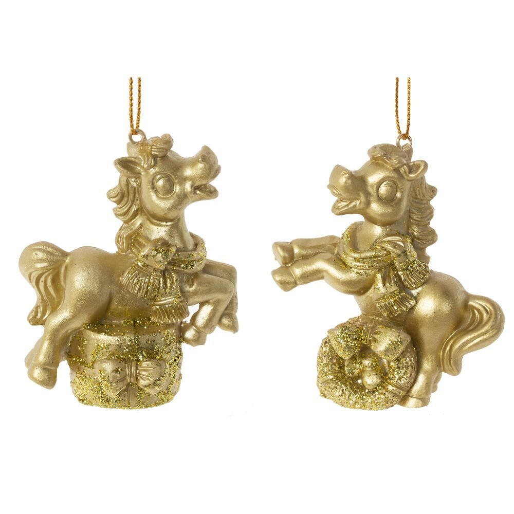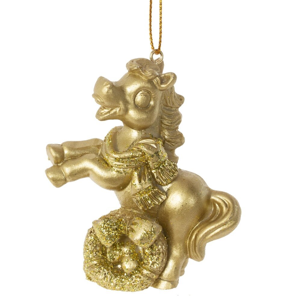 Декоративная подвесная фигурка "Лошадка" — стильный и символичный элемент декора, который станет прекрасным подарком к Новому году или талисманом на удачу. Выполненная из прочного полимерного материала и окрашенная в изысканный золотой цвет, фигурка символизирует энергию, силу и процветание. Лошадка традиционно ассоциируется с удачей и успехом в делах. Идеально подойдёт для оформления интерьера дома или офиса, а также станет оригинальным дополнением к новогодней композиции. Этот стильный сувенир будет радовать вас и ваших близких весь год. Фигурка представлена в двух видах.