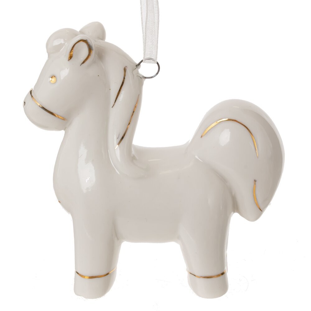 Декоративная фигурка "Лошадь" с подвесом — стильный и символичный элемент декора, который станет прекрасным подарком к Новому году или талисманом на удачу. Выполненная из фарфора и окрашенная в белый цвет, фигурка символизирует энергию, силу и процветание. Лошадь традиционно ассоциируется с удачей и успехом в делах. Идеально подойдёт для оформления интерьера дома или офиса, а также станет оригинальным дополнением к новогодней композиции. Этот стильный сувенир будет радовать вас и ваших близких.