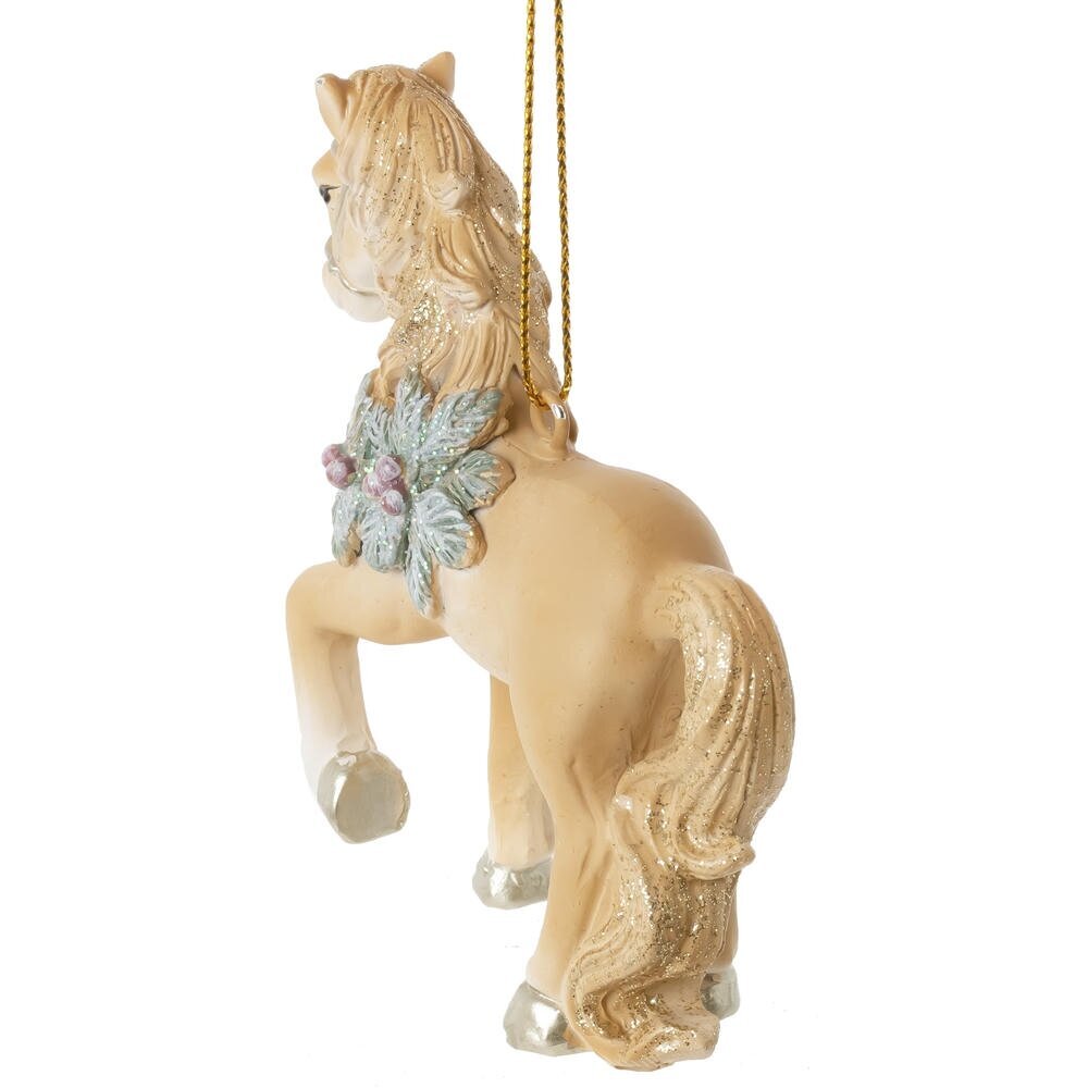 Декоративная фигурка "Лошадь" с подвесом — стильный и символичный элемент новогоднего декора. Выполненная из полимерных материалов и окрашенная в рыжий цвет, фигурка символизирует энергию, силу и процветание. Детальная проработка, золотой блеск и новогоднее украшение делают лошадку настоящей звездой праздничной ели. Идеально подойдёт для оформления интерьера дома или офиса, а также в качестве приятного сувенира для родных и близких.