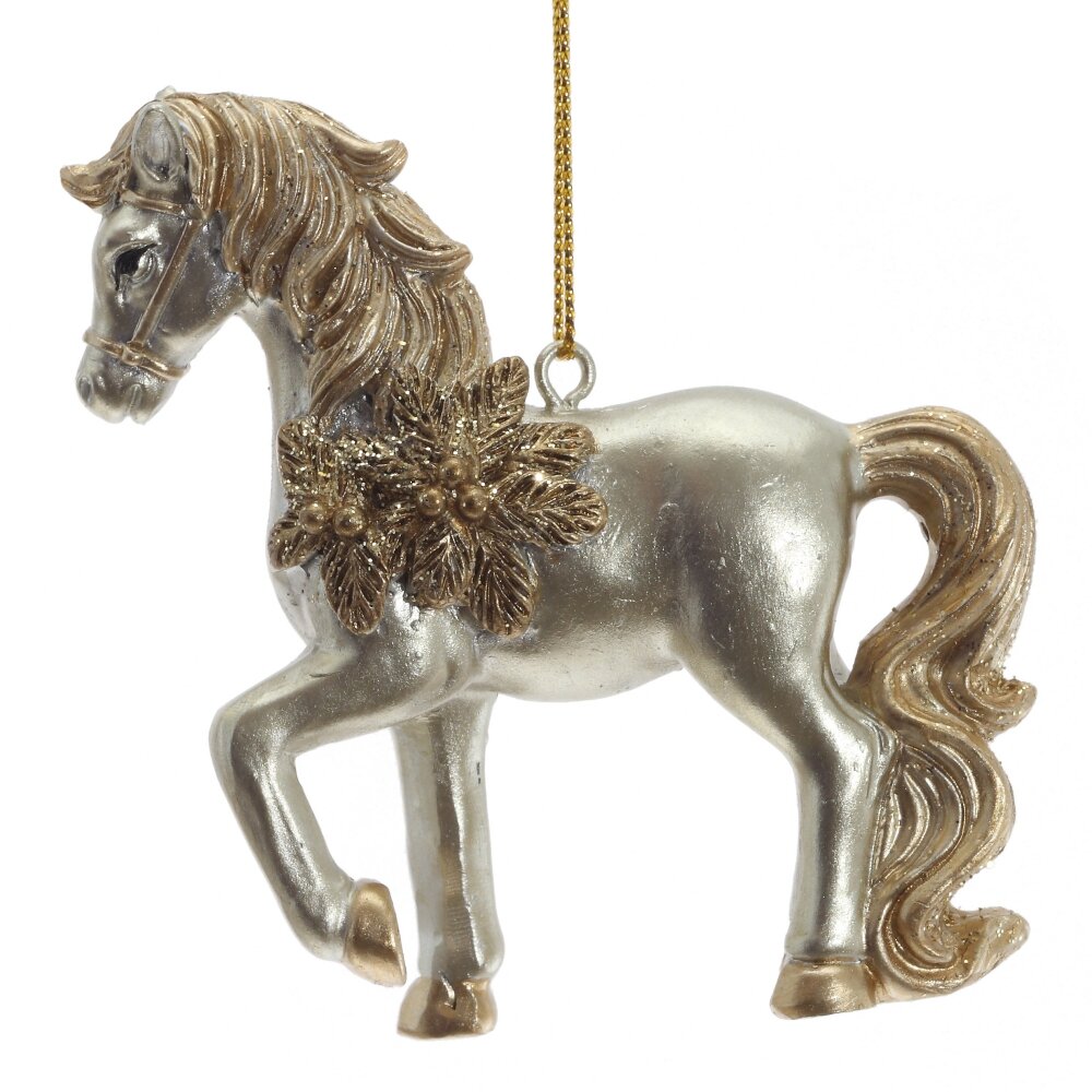 Декоративная фигурка "Лошадь" с подвесом — стильный и символичный элемент декора, который станет прекрасным подарком к Новому году или талисманом на удачу. Выполненная из полимерных материалов и окрашенная в золотой цвет, фигурка символизирует энергию, силу и процветание. Лошадь традиционно ассоциируется с удачей и успехом в делах. Идеально подойдёт для оформления интерьера дома или офиса, а также станет оригинальным дополнением к новогодней композиции. Этот стильный сувенир будет радовать вас и ваших близких.