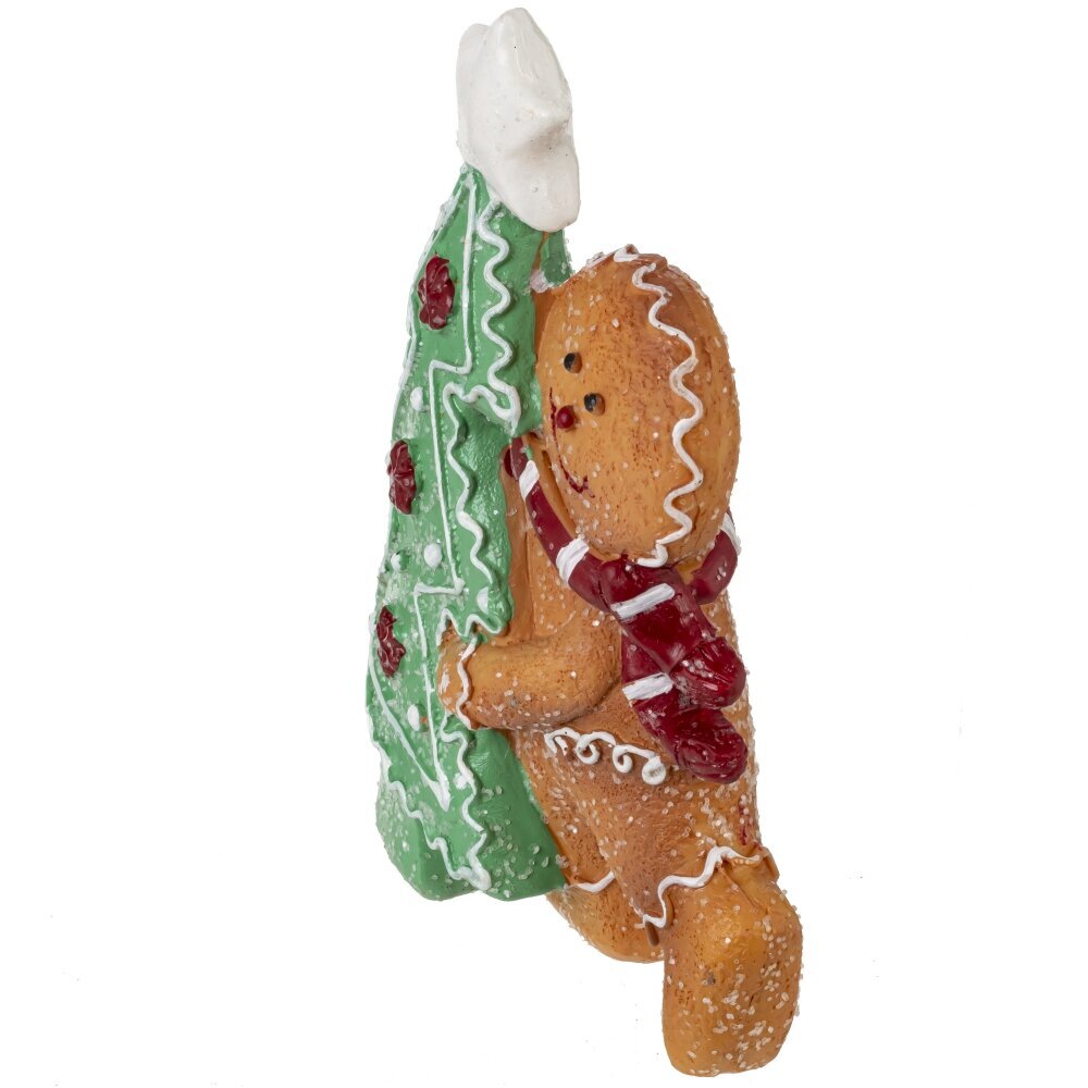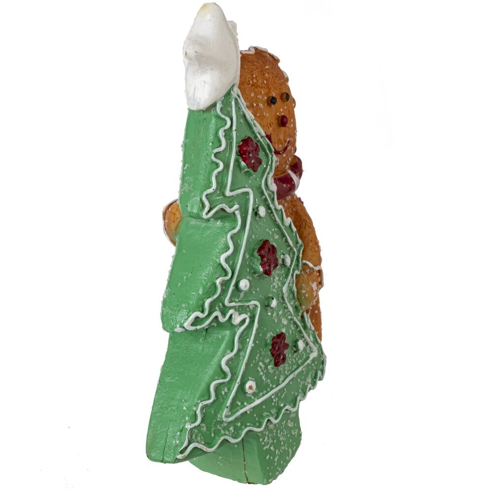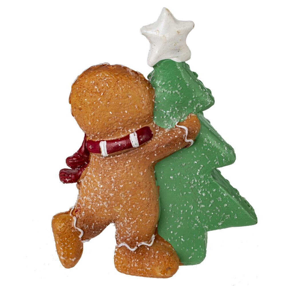 Фигурка декоративная "Пряник" - это веселый пряничный человечек из полимерной глины. Он держит большую зеленую елку-пряник, намекая на радостные праздничные моменты и волшебство нового года. Изящное украшение для создания атмосферы в доме в преддверии праздников. Станет прекрасным подарком и элементом коллекции новогодних декораций.