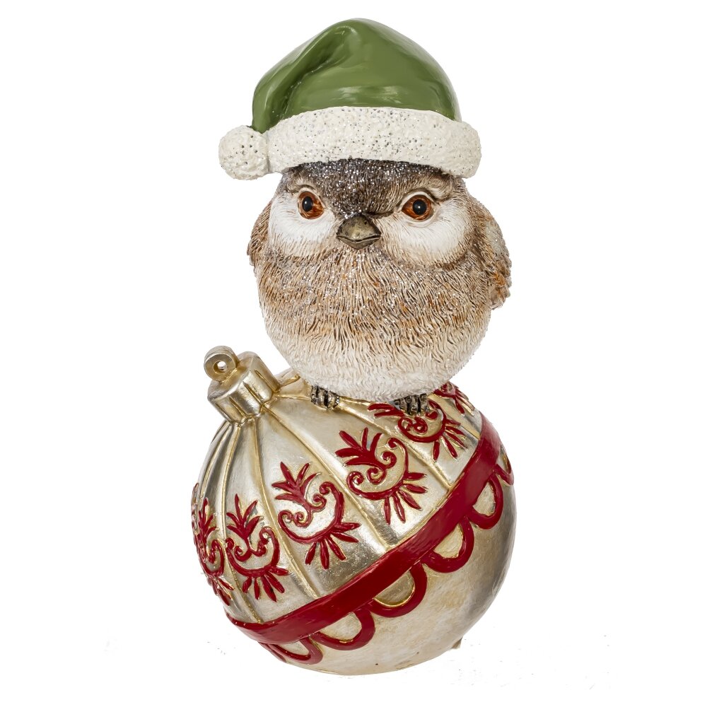 Очаровательная декоративная фигурка птички, выполненная из качественных полимерных материалов, станет изысканным украшением вашего новогоднего интерьера. Птичка уютно расположилась на праздничном новогоднем шаре и дополнена милым новогодним колпачком, что придаёт ей особую праздничную атмосферу и настроение волшебства. Детально проработанные детали — от мягких очертаний перьев до ярких акцентов на колпачке — делают эту фигурку по-настоящему привлекательной и живой. Её можно использовать как самостоятельный декоративный элемент или часть новогодней композиции на ёлке, в витрине или праздничном столе. Такая фигурка станет прекрасным подарком для любителей изящного и уютного праздничного декора.