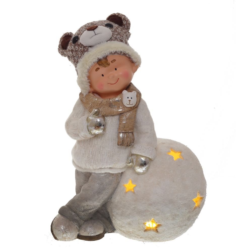 Новогодняя фигурка ребенка со снежком. Так удивительно повсюду встречать волшебные признаки наступающего Нового года. Мальчик любит проводить зимние дни на улице, наблюдая за подготовкой к празднику. Фигурка с подсветкой, работает от трех батареек ААА (не прилагаются).