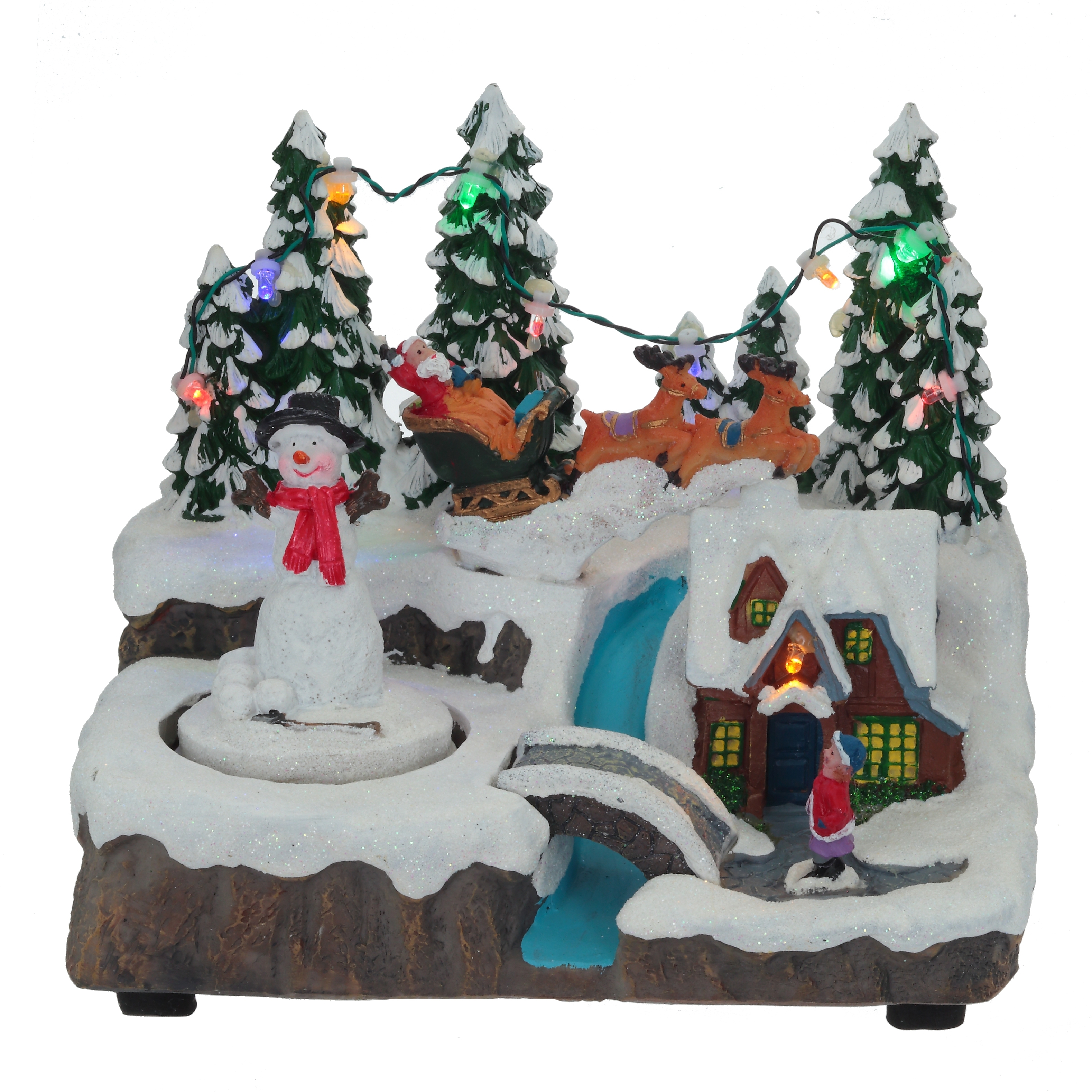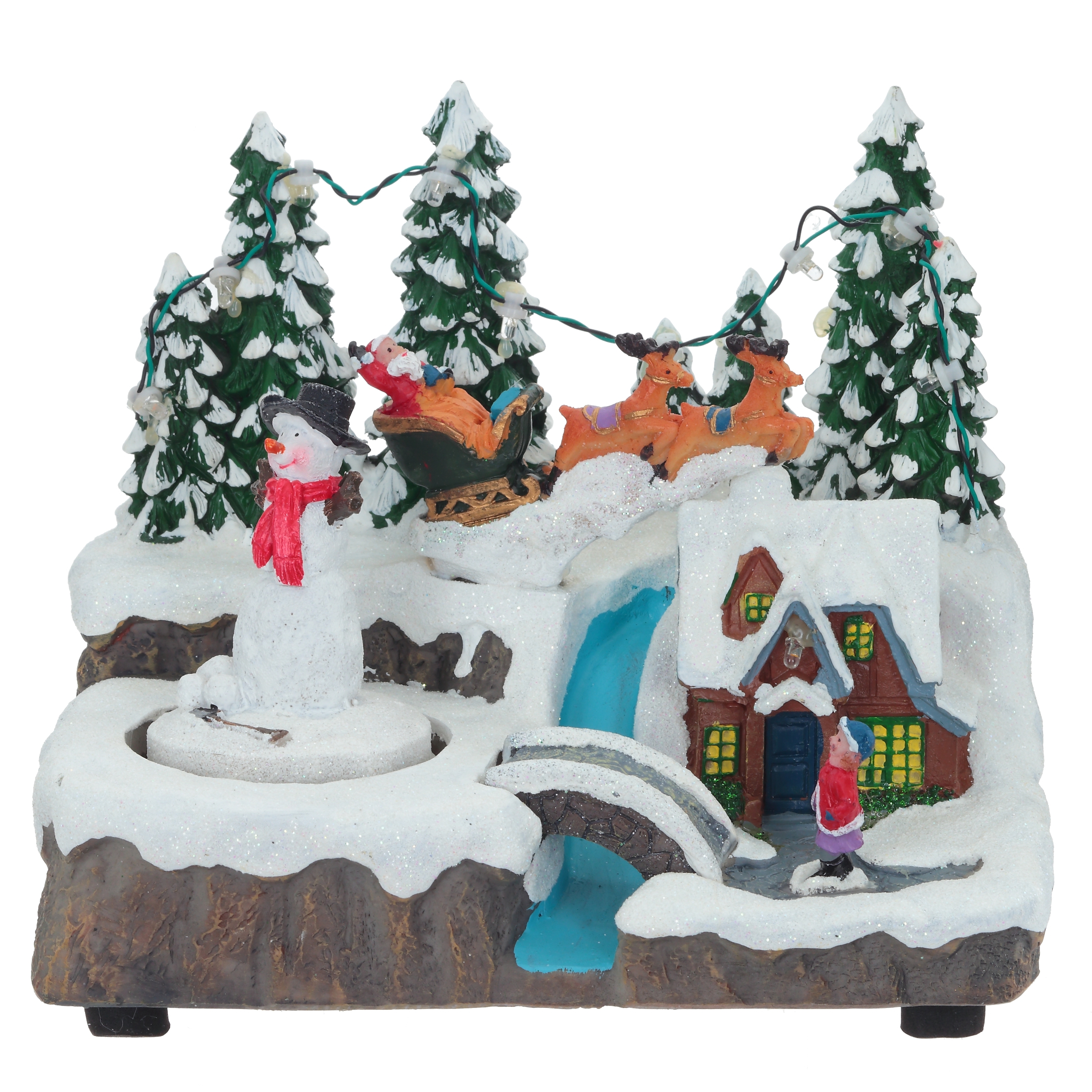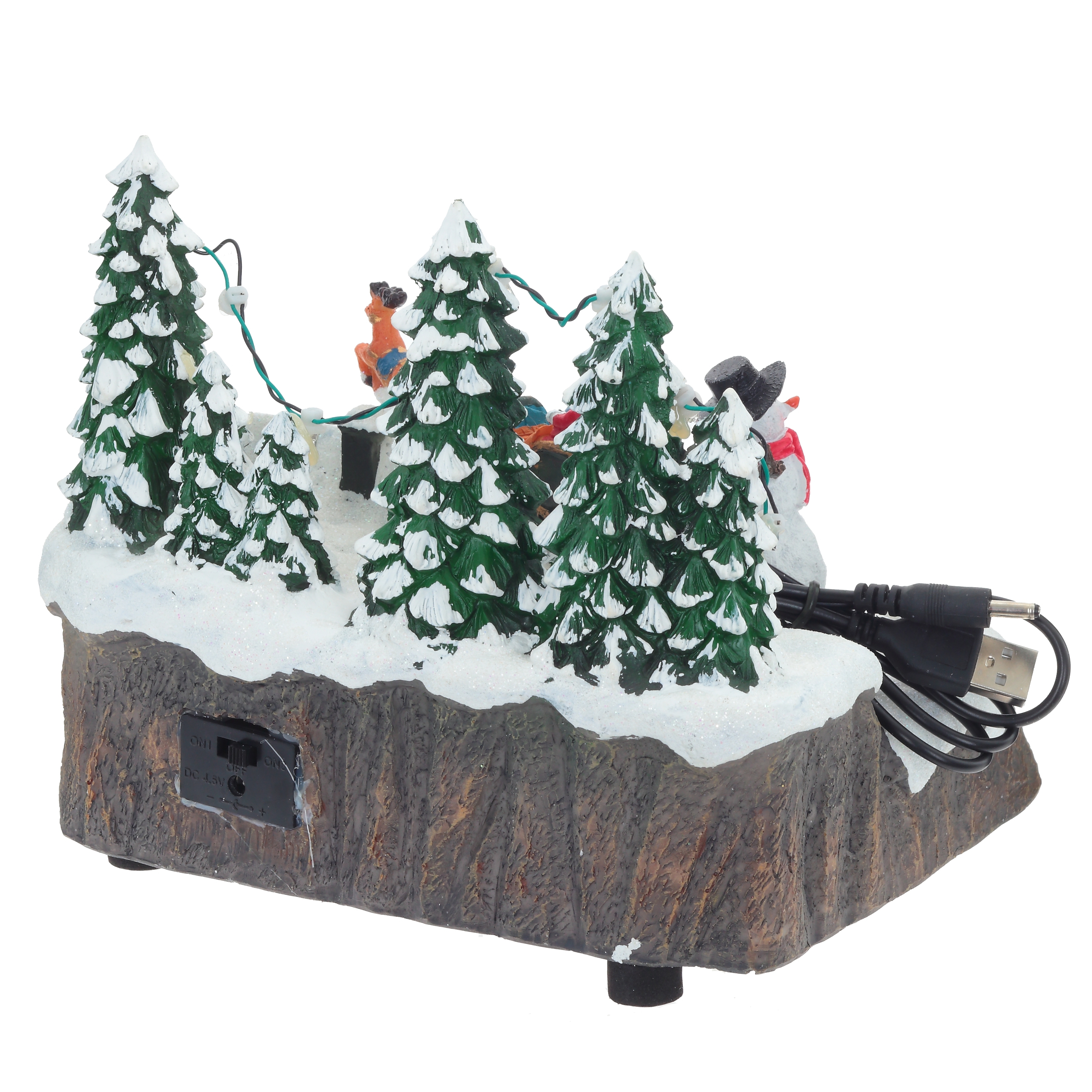 Веселые огоньки, забавный домик, елки, восторженная детвора, снеговик и Санта в санях. Хотите, чтобы наступающий год был ярким, полным веселых чудес? Тогда эта оригинальная миниатюра для вас. Фигурка с подсветкой и функцией движения. Работает от трех батареек АА (не прилагаются).