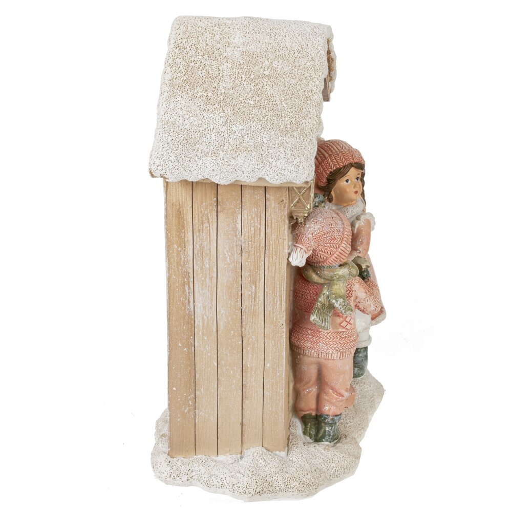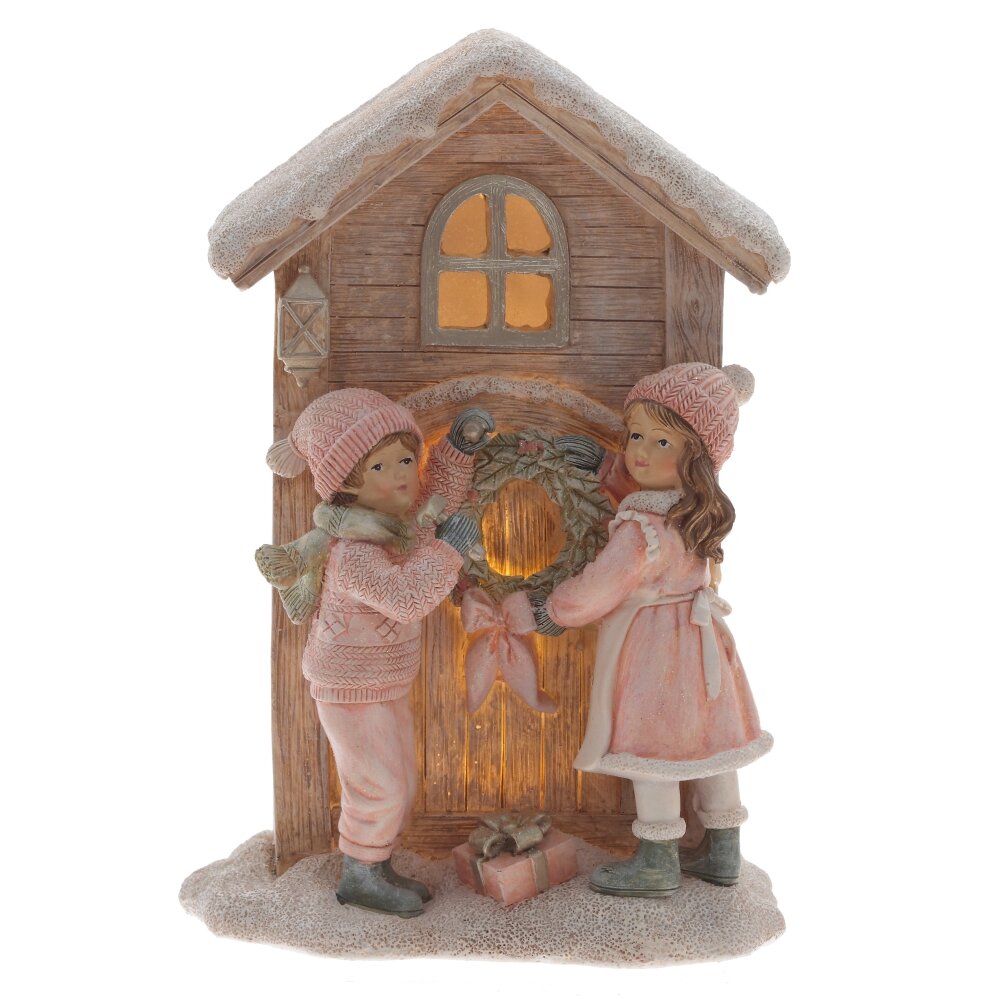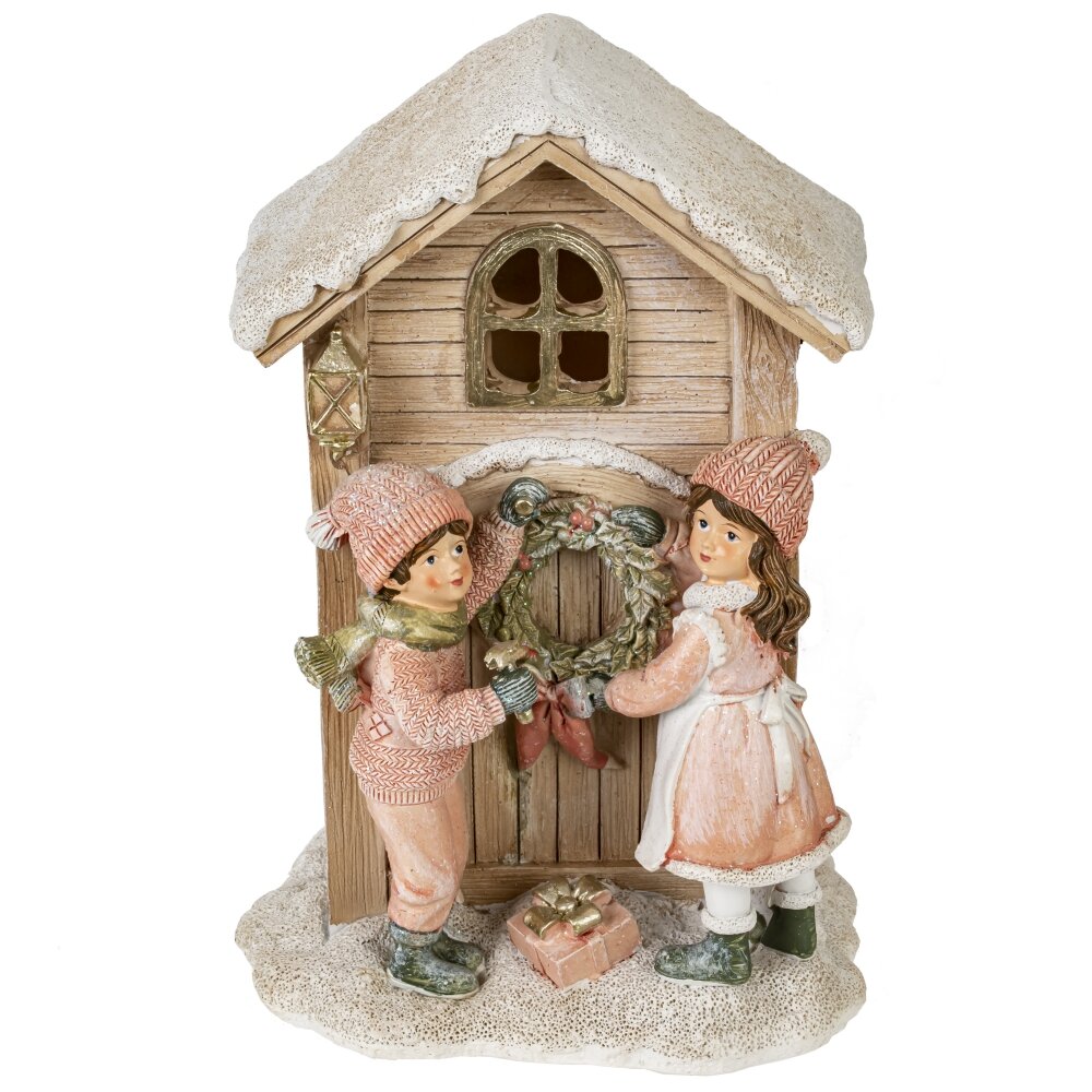 Декоративная фигурка с подсветкой "Дети и домик" — это восхитительное оформление для вашего праздничного интерьера. Она выполнена из полистоуна, что обеспечивает высокую детализацию и реалистичность изображения. На фигурке запечатлена трогательная сцена, где мальчик и девочка с радостью вешают рождественский венок на входную дверь домика. При помощи специального рычажка вы можете активировать подсветку, которая загорается в окошке двери, создавая волшебный световой эффект. Фигурка работает от двух батареек типа LR44, которые уже входят в комплект. Изделие прекрасно будет смотреться на полке, столе или в качестве акцента в новогодней композиции. Подарите себе и своим близким атмосферу настоящего праздника с этой красивой и уютной фигуркой!