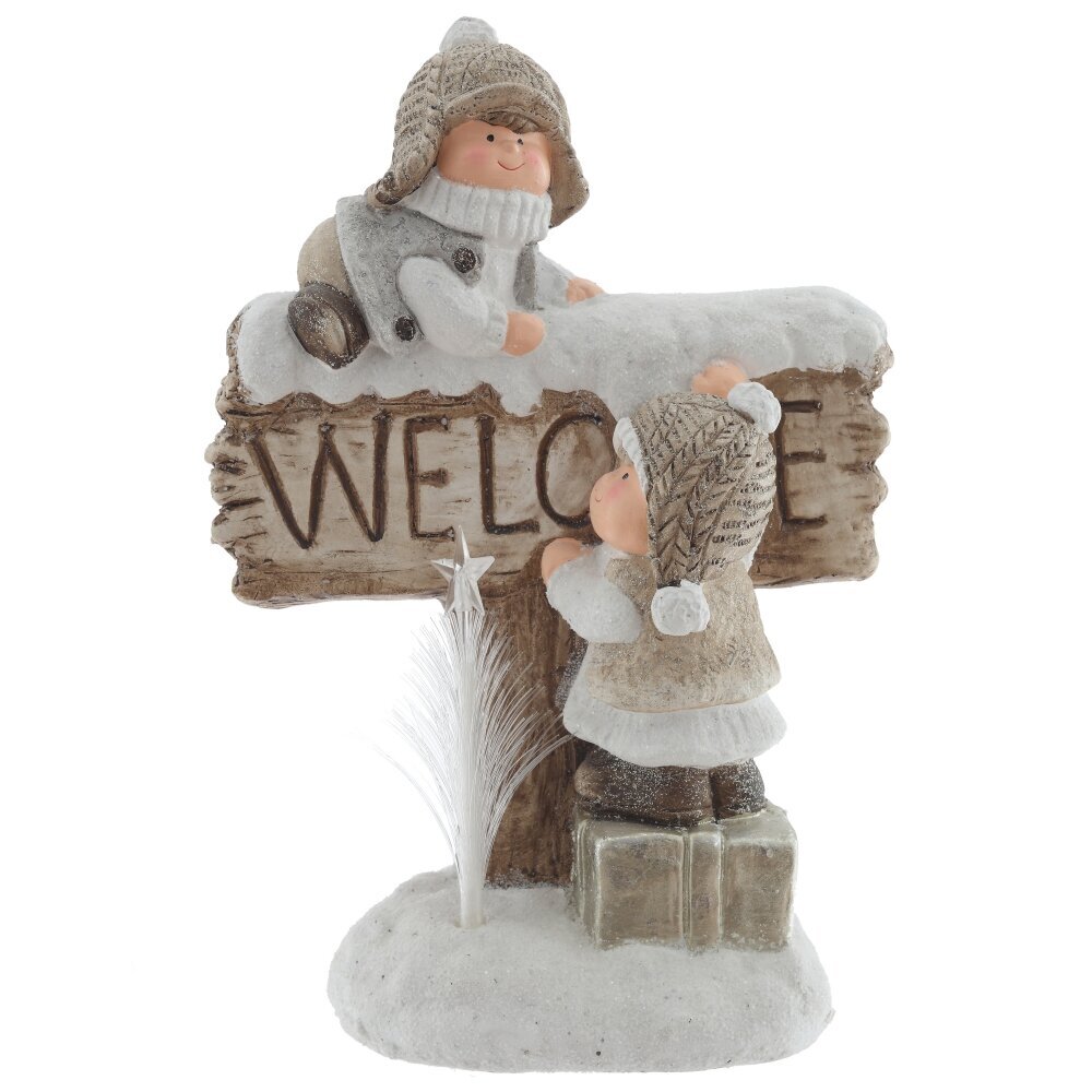 Декоративная фигурка "Дети зимой" — очаровательная зимняя композиция, изображающая играющих на снегу детей. Фигурка выполнена с тонкой проработкой деталей: радостные лица, зимняя одежда, снежные элементы — всё передаёт атмосферу весёлой зимней прогулки. Дополнительную магию добавляет встроенная подсветка, работающая от батареек, которая мягко освещает композицию, создавая тёплое и уютное свечение в тёмное время суток. Это украшение станет прекрасным дополнением к новогоднему интерьеру, подойдёт для размещения на полке, каминной полке или праздничном столе. Благодаря прочным материалам и качественной сборке, фигурка будет радовать вас не один сезон.