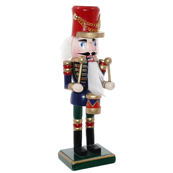 Бравый Щелкунчик в ярком мундире станет нарядным новогодним караулом, приветствующим наступление долгожданного праздника. Фигурка изготовлена из дерева.