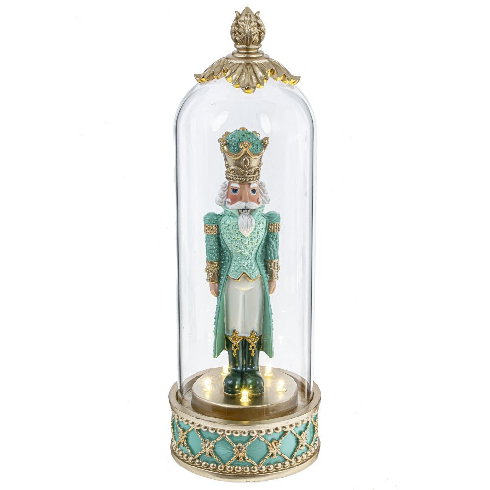 Декоративная фигурка "Щелкунчик" выполнена в ярких цветах и помещена в стеклянную колбу с подсветкой. Она идеально подойдет для украшения каминной полки, полки в гостиной или любого другого уютного места в вашем доме. Данная фигурка - это не просто украшение, это стильный акцент в интерьере. Она станет необычным подарком для любителей стильных и неординарных вещей.