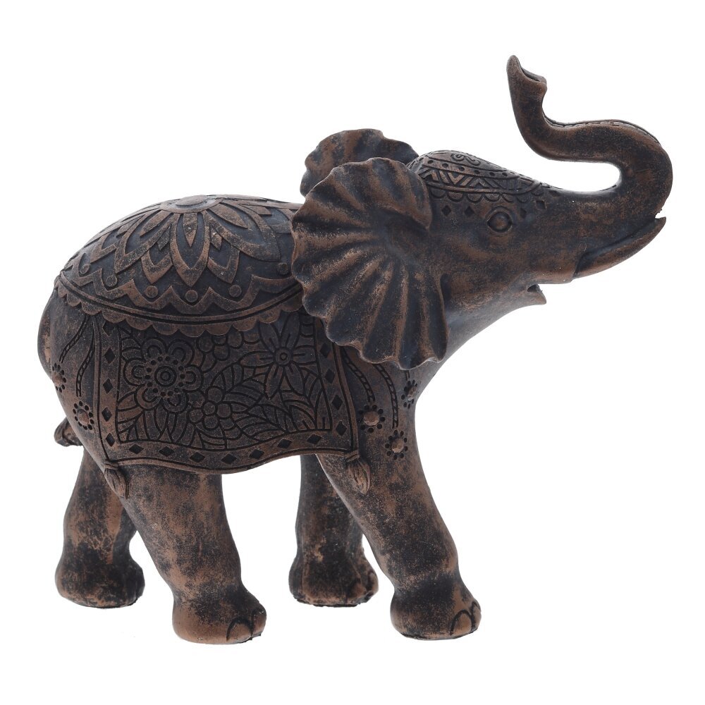 Декоративная фигурка "Слон" изготовлена из прочных полимерных материалов и привлекает внимание своим изысканным дизайном. Выполненная в коричневом цвете с аккуратными узорами, она символизирует удачу, мудрость и благополучие. Поднятый вверх хобот считается знаком счастья и процветания, что делает изделие отличным подарком или украшением интерьера. Благодаря детальной проработке и изящным декоративным элементам, фигурка гармонично впишется в классический или восточный стиль оформления. Слон станет прекрасным дополнением к вашей коллекции статуэток или элегантным акцентом в интерьере.