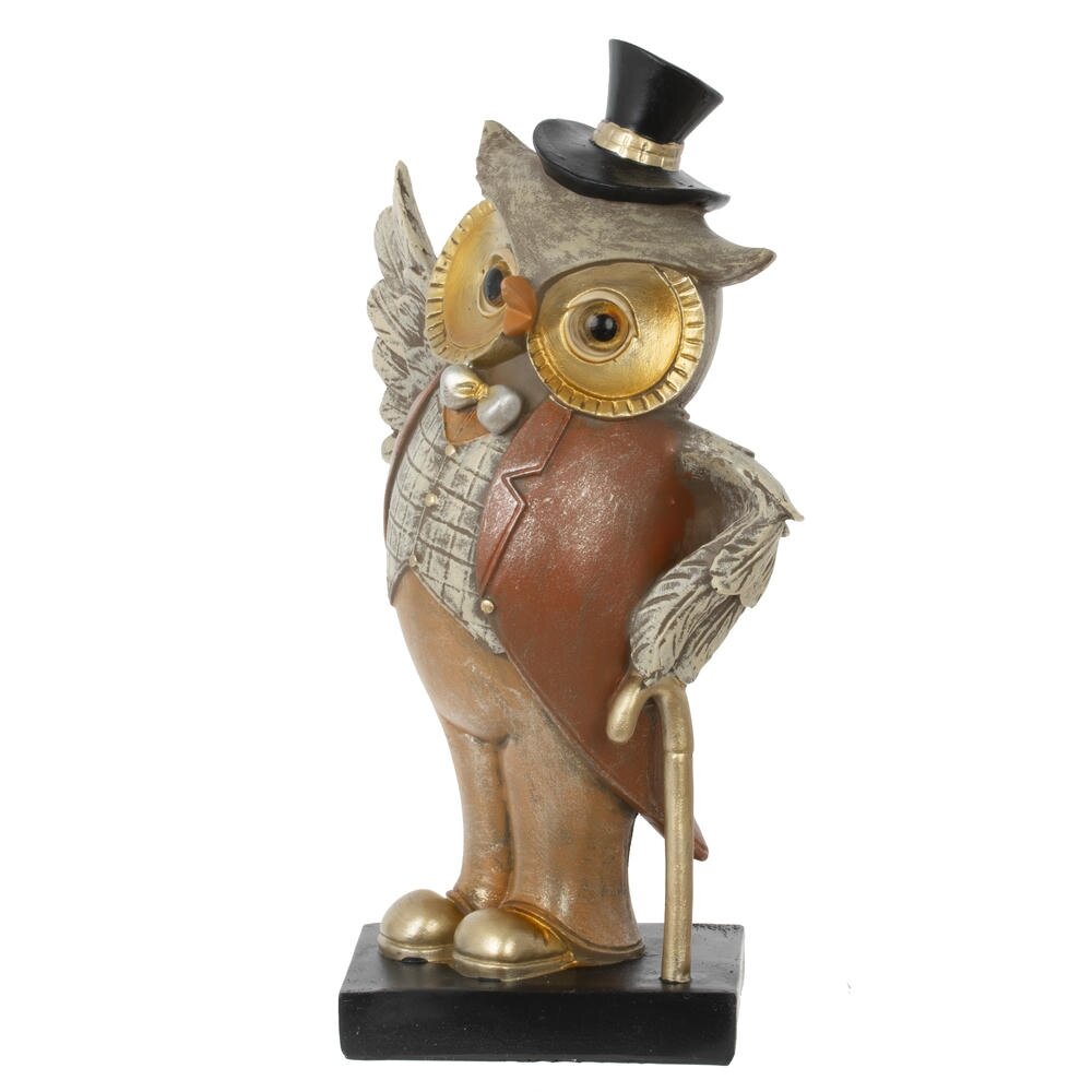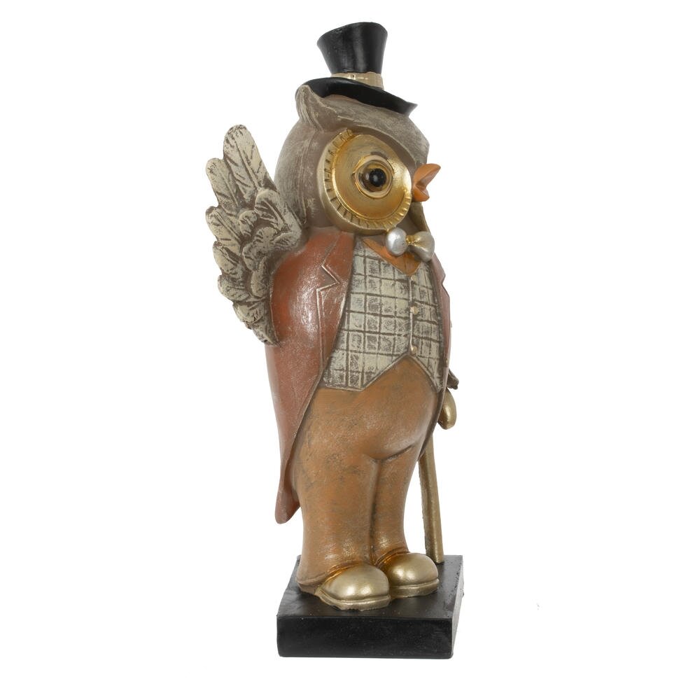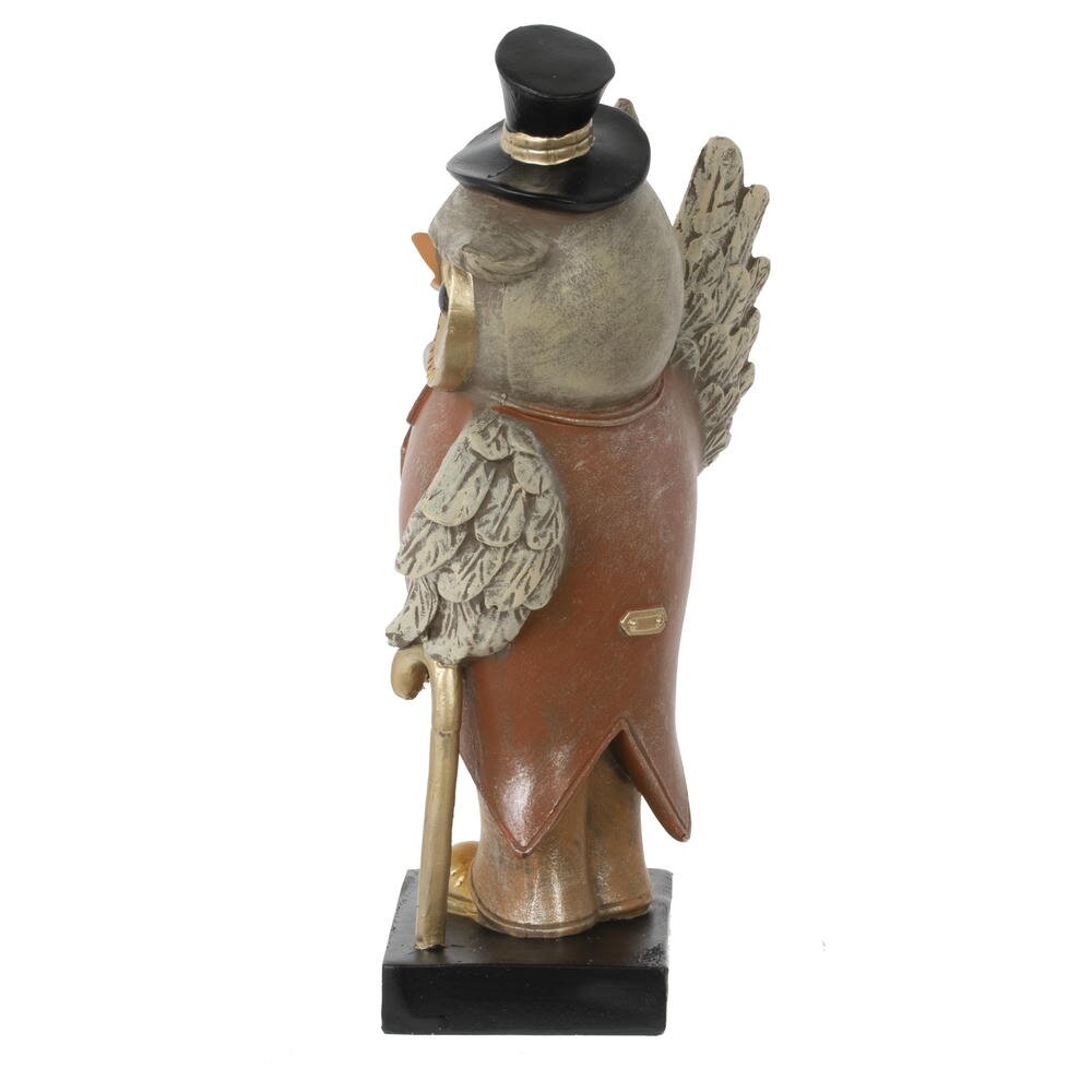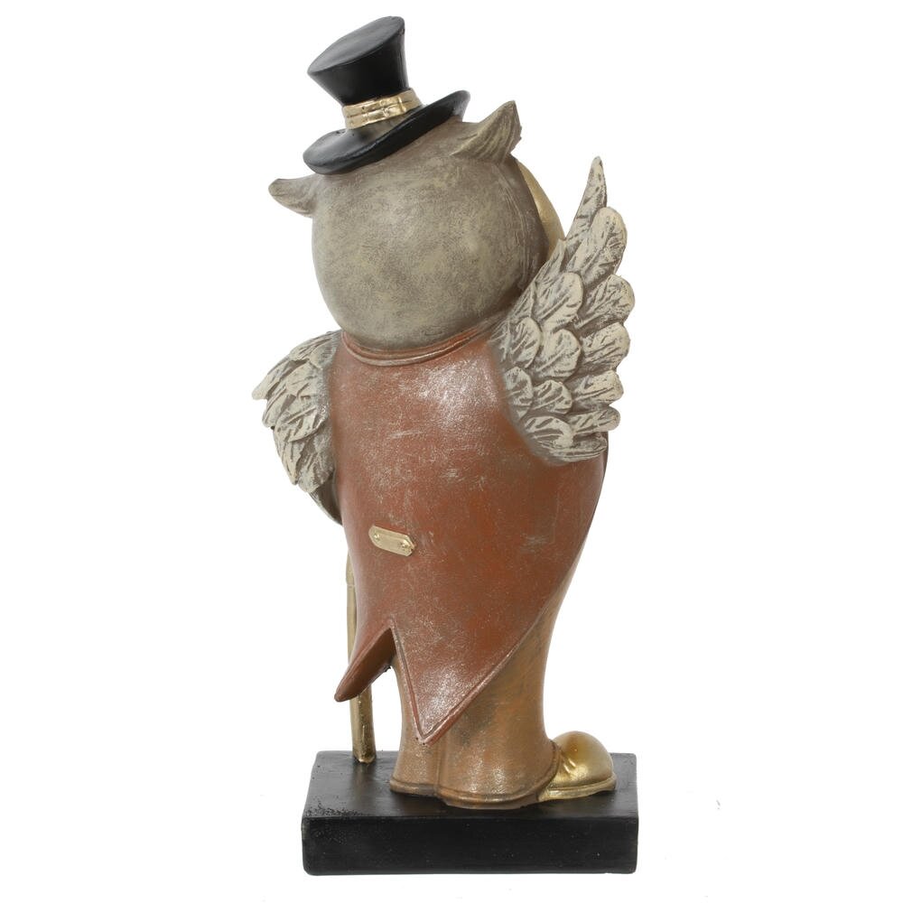 Декоративная фигурка «Сова?джентльмен» станет изюминкой вашего интерьера и оригинальным подарком для ценителей необычных акцентов в доме. Стильная сова выполнена в образе аристократа: на ней фрак тёплого коричневого оттенка с жилетом под старину, золочёные ботинки и высокий цилиндр. Аккуратная трость и монокль подчёркивают мудрость и утончённый характер персонажа. Детализированная проработка перьев и благородная цветовая гамма с золотистыми акцентами делают фигурку заметным элементом декора. Идеально подойдёт для оформления гостиной, кабинета, полки с книгами или рабочего стола, создавая атмосферу уюта, интеллигентности и лёгкого юмора.