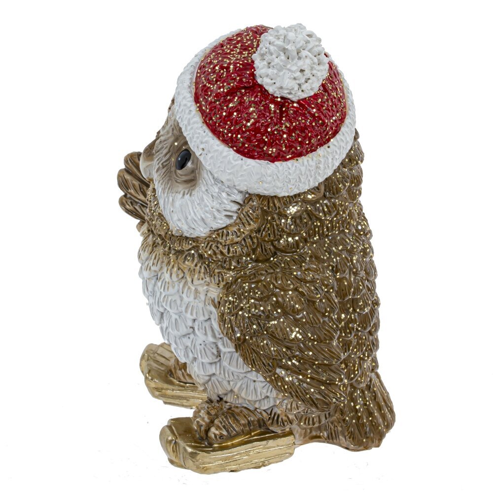 Декоративная фигурка "Сова" станет изысканным дополнением вашего новогоднего интерьера. Она отличается высокой детализацией, позволяя увидеть каждое перышко и выразительные глаза. Сова одета в красный новогодний колпак, что придаёт ей праздничный вид, а золотые снегоступы добавляют элемент игривости и шарма. Эта фигурка не только станет стильным украшением, но и символом мудрости и охраны домашнего очага. Отличный выбор для подарка или сувенира, который порадует близких и создаст уютную атмосферу в вашем доме в праздник.