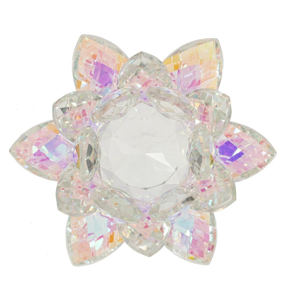 Декоративная фигурка «Цветок» из стекла — изящный интерьерный аксессуар, который привлекает внимание своим утонченным дизайном и красивой игрой света. Изделие выполнено в форме распустившегося цветка с множеством граненых лепестков, благодаря которым поверхность эффектно переливается радужными оттенками. Прозрачное стекло придает фигурке легкость, воздушность и визуальную чистоту, делая ее стильным украшением для дома или офиса. Такой декор гармонично дополнит полку, журнальный столик, комод или витрину, добавив пространству блеска и элегантности. Фигурка «Цветок» станет отличным подарком для ценителей красивых деталей, создающих уют и особую атмосферу в интерьере.