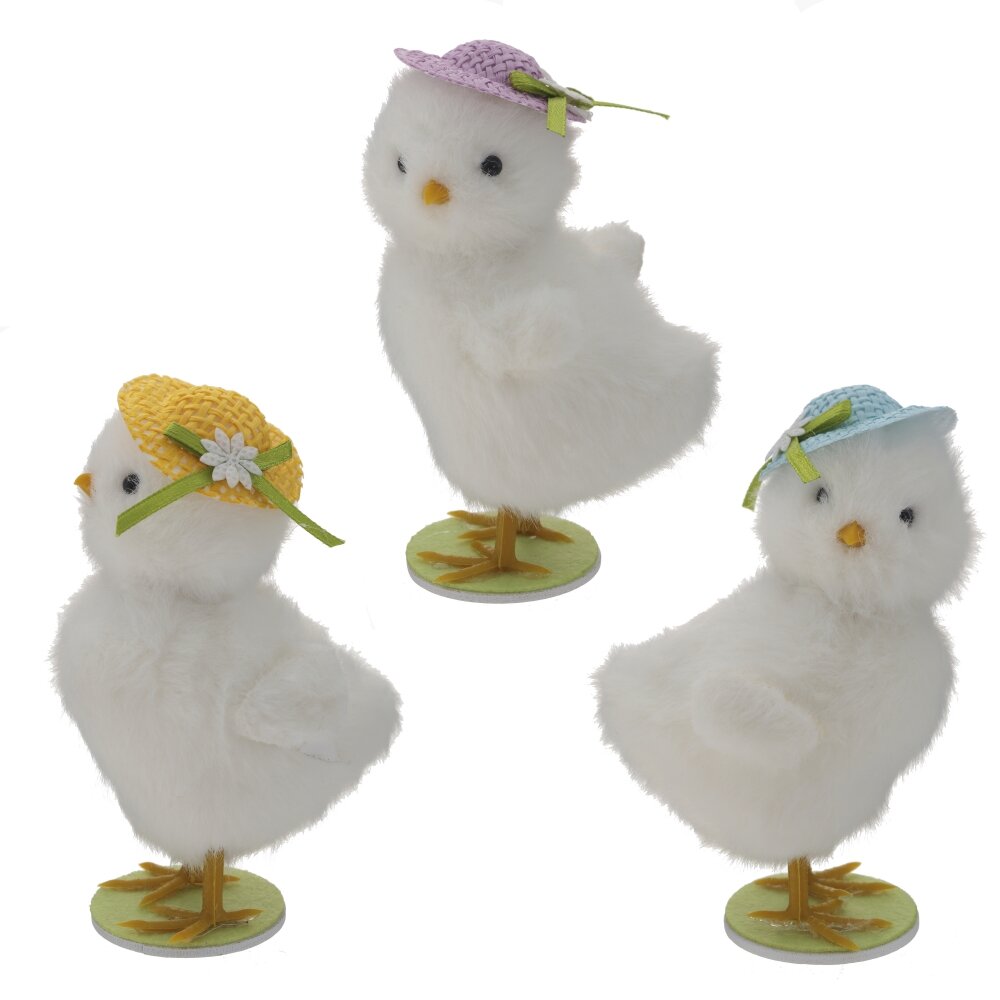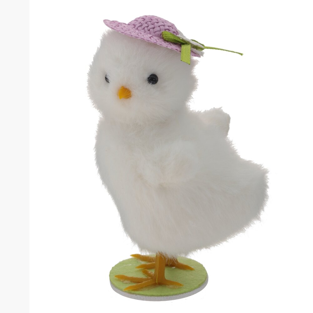 Этот милый Цыпленок в цветной шляпке станет украшением для вашего дома во время пасхальных праздников. Его белая окраска придает ему особый шарм и привлекает внимание. Подставка, на которой расположен цыпленок, позволяет легко установить фигурку на любую поверхность. Эта декоративная фигурка послужит подарком для ваших близких и друзей. Она создаст атмосферу радости и веселья, напоминая о прекрасном времени года. Представлено в трех вариантах.