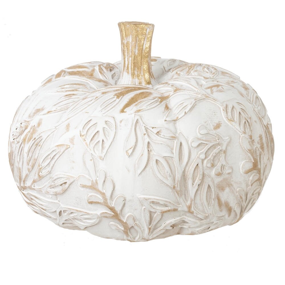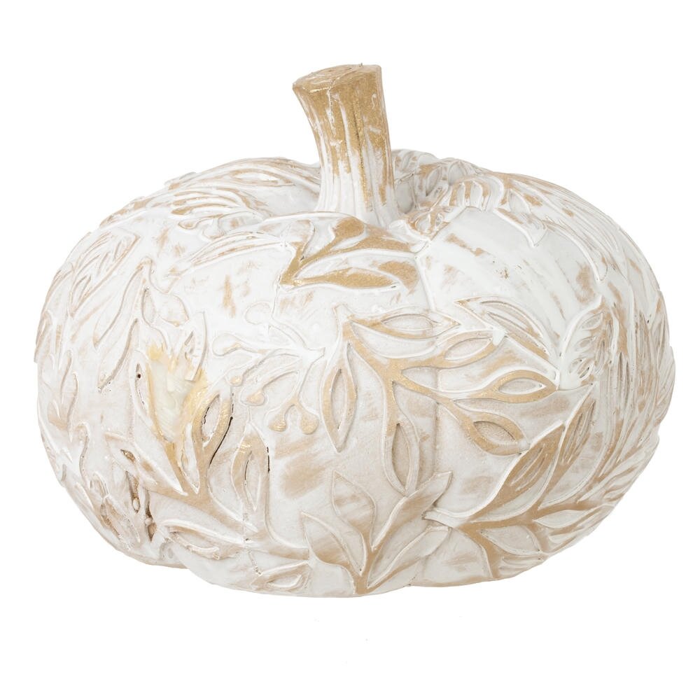 Декоративная фигурка "Тыква" в винтажном стиле станет уникальным дополнением к вашему интерьеру. Ее изящный дизайн и особая рельефная поверхность создают эффект старинной отделки, что придает ей особый шарм. Цвета фигурки - золотой и белый, которые отлично сочетаются между собой и создают непревзойденную гармонию.