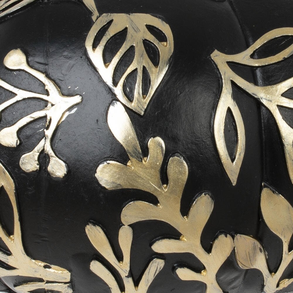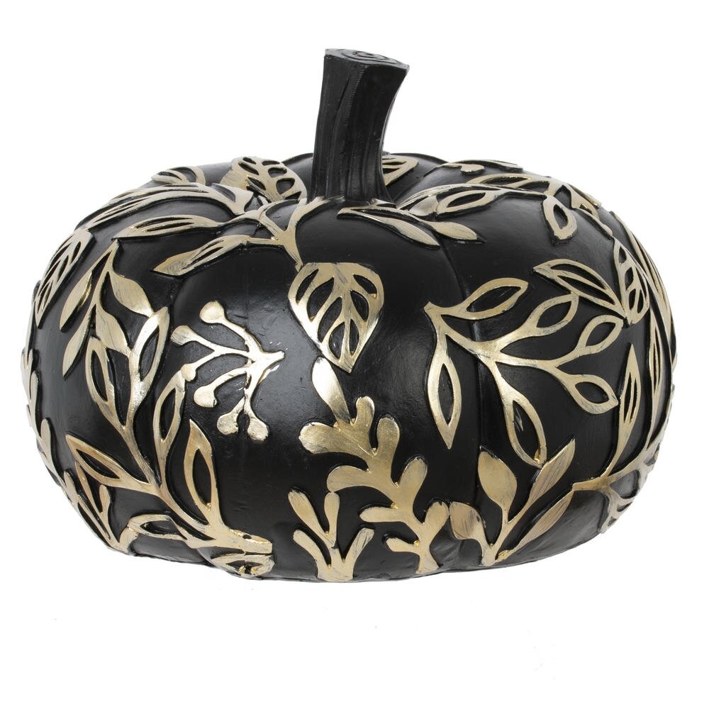 Элегантная декоративная фигурка в форме тыквы станет стильным акцентом в любом интерьере. Выполненная из качественных полимерных материалов, она сочетает в себе матовый чёрный фон и изящный золотистый растительный орнамент. Рельефные веточки и листья создают эффект ручной художественной работы и подчёркивают благородный характер декора. Фигурка идеально подойдёт для оформления гостиной, спальни или праздничного стола, гармонично впишется в осенний декор и композиции к Хэллоуину, но при этом выглядит достаточно универсально, чтобы радовать глаз круглый год. Лёгкая, прочная и устойчивая, она станет удачным подарком ценителям красивых интерьерных деталей и современных декоративных решений.