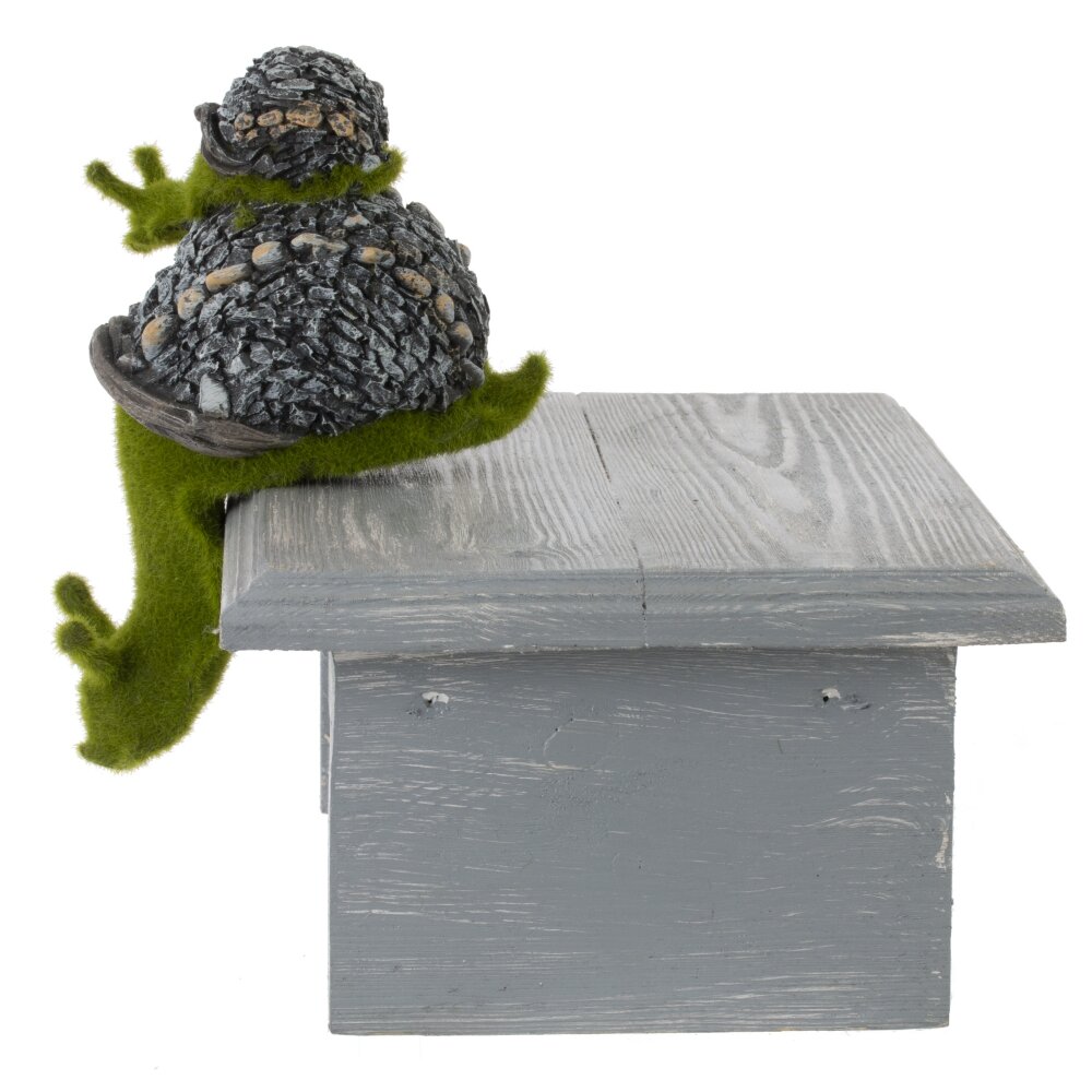 Декоративная фигурка «Улитки» из прочных полимерных материалов — выразительный акцент для комнатных и уличных зеленых зон. Композиция из двух улиток, стилизованных под камень и покрытыми мягкими зелеными акцентами, красиво смотрится в кашпо, горшках, балконных ящиках и на клумбах. Форма рассчитана на угловое размещение: фигурка компактно становится у борта , создавая эффект небольшого лесного уголка. На дне предусмотрено отверстие для надежной фиксации в грунте с помощью штыря/палочки, что предотвращает смещение при поливе и на ветру. Материал легкий, устойчивый к влаге, прост в уходе — достаточно протереть влажной салфеткой.