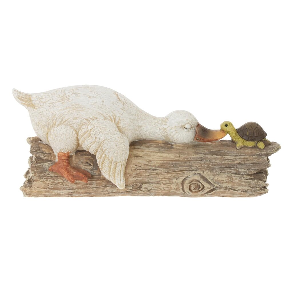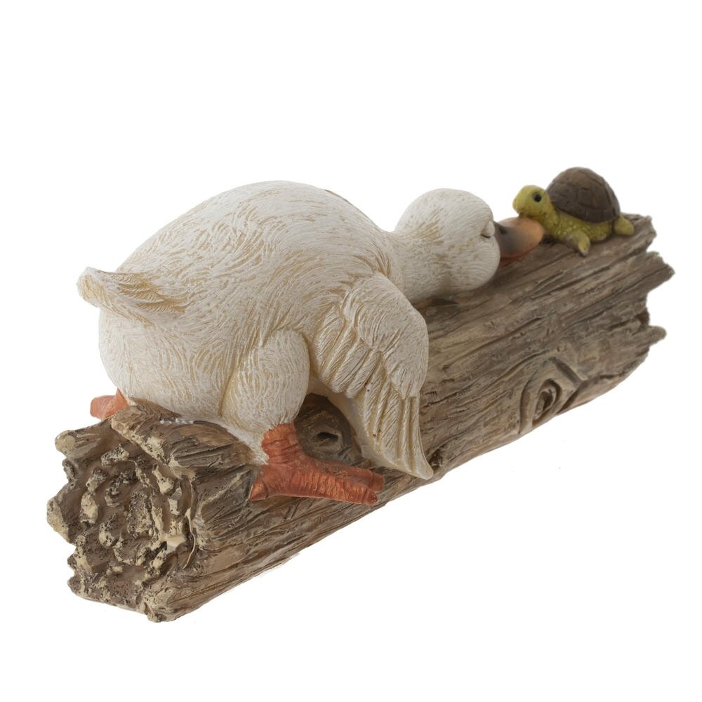 Эта очаровательная пасхальная фигурка утки станет прекрасным дополнением к праздничному декору. Изготовленная из прочных полимерных материалов, она отличается детализированной проработкой и приятной цветовой гаммой. Уточка выполнена в нежных пастельных тонах, её крылышки и перья аккуратно выделены, что придаёт фигурке реалистичность и объем. Особую прелесть придаёт сценка: утка нежно прикасается к небольшой черепашке, создавая атмосферу дружелюбия и весеннего уюта. Основание выполнено в виде деревянного бревна, что добавляет фигурке естественности. Такая фигурка станет замечательным украшением дома в период Пасхи, создавая праздничное настроение и уют.