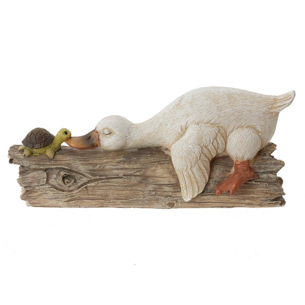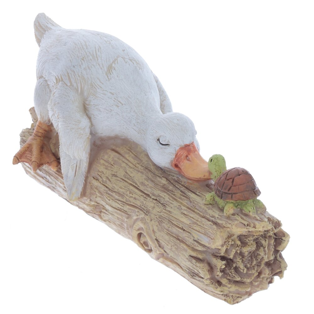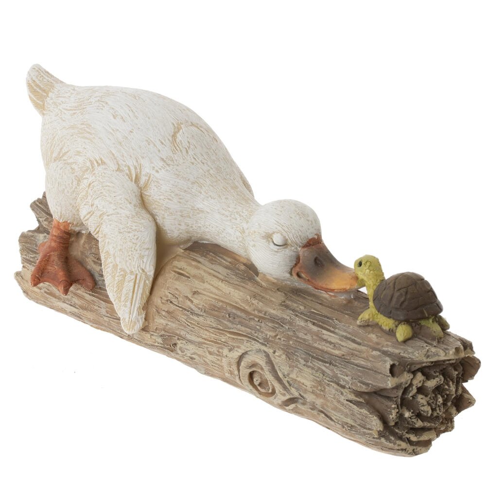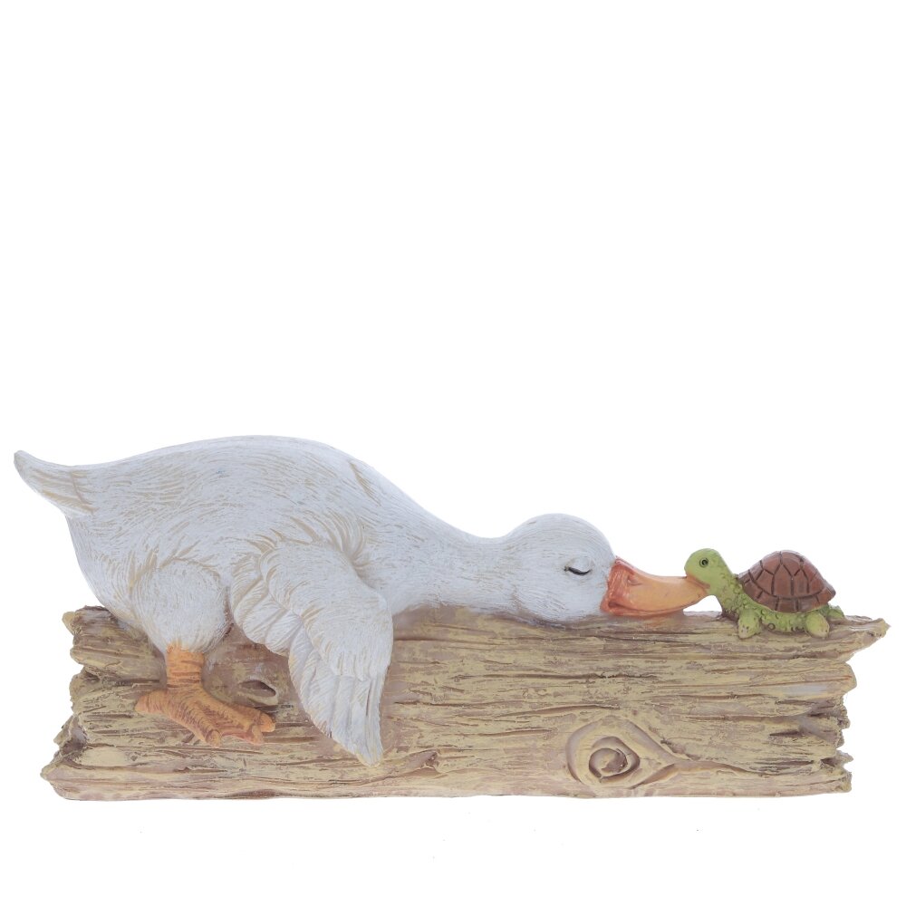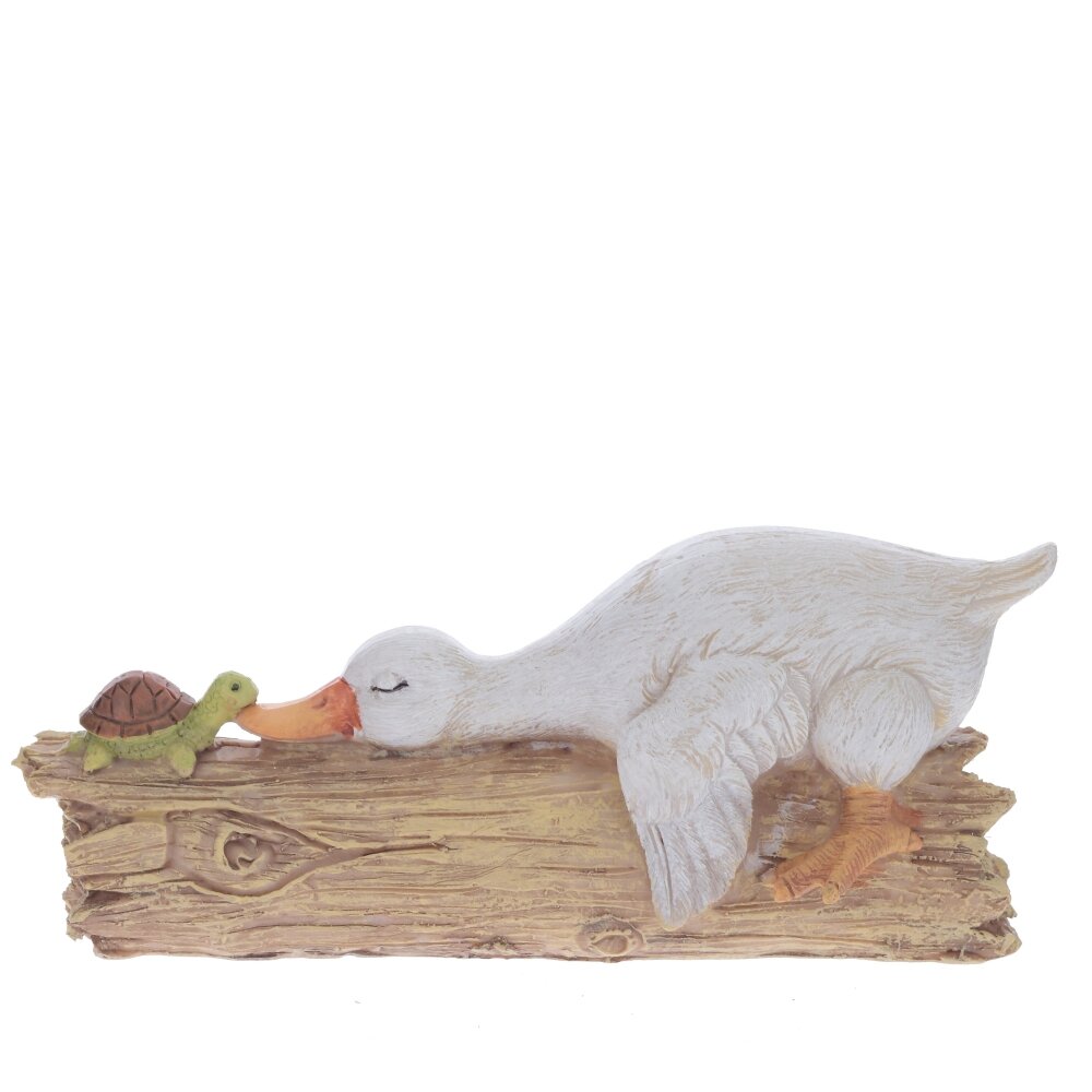 Эта очаровательная пасхальная фигурка утки станет прекрасным дополнением к праздничному декору. Изготовленная из прочных полимерных материалов, она отличается детализированной проработкой и приятной цветовой гаммой. Уточка выполнена в нежных пастельных тонах, её крылышки и перья аккуратно выделены, что придаёт фигурке реалистичность и объем. Особую прелесть придаёт сценка: утка нежно прикасается к небольшой черепашке, создавая атмосферу дружелюбия и весеннего уюта. Основание выполнено в виде деревянного бревна, что добавляет фигурке естественности. Такая фигурка станет замечательным украшением дома в период Пасхи, создавая праздничное настроение и уют.