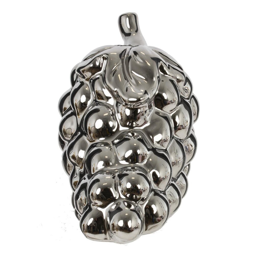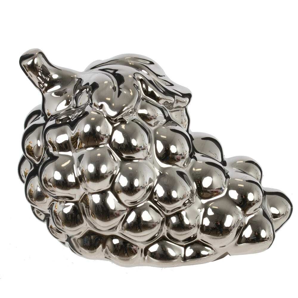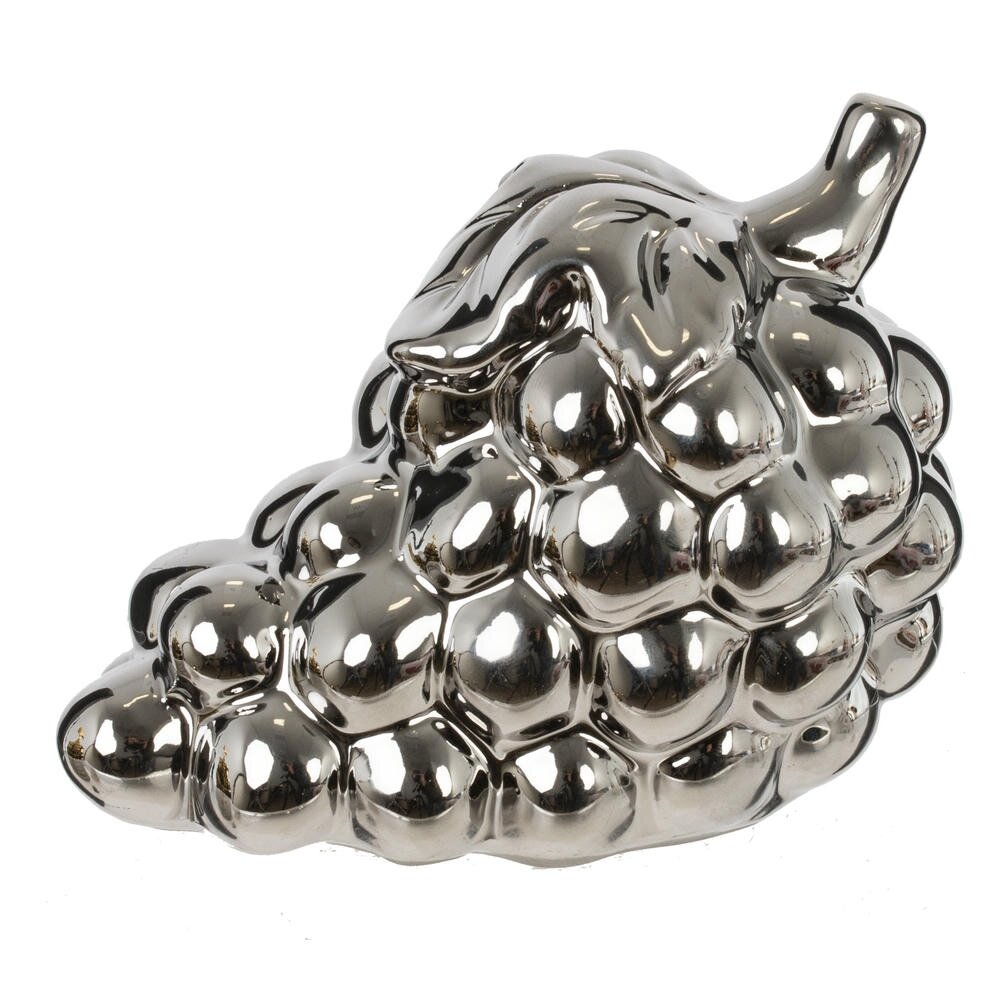 Декоративная фигурка «Виноград» – стильный акцент для современного интерьера. Выполнена из высококачественного фарфора с зеркальным металлизированным покрытием, имитирующим полированный хром. Объемные гладкие «ягоды» и плавные линии грозди подчеркивают игру света и бликов, создавая эффект роскоши и изысканности. Фигурка гармонично впишется в гостиную, кухню, столовую или офис, дополнит сервировку праздничного стола, витрину или полку с декором. Подойдет как самостоятельный элемент композиции или в сочетании с другими предметами в серебристых тонах. Прекрасный вариант подарка ценителям оригинальных интерьерных аксессуаров.